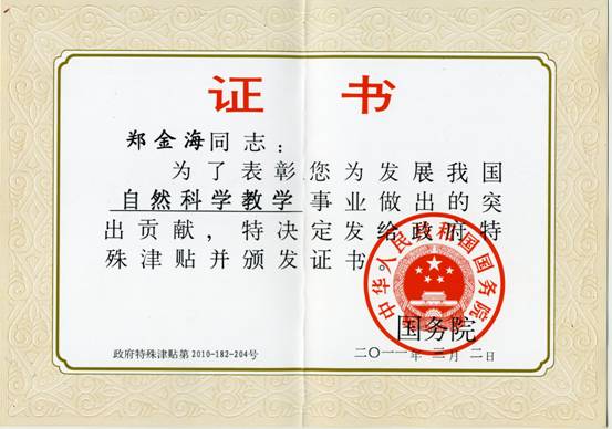 根据人力资源和社会保障部《关于公布2010年度享受政府特殊津贴人员名单的通知》(人社部函[2011]68号)的精神,教育部直属高校和直属单位2010年共有395人获批准享受政府特殊津贴。草莓视频 郑金海教授由于在发展自然科学教学事业中的突出贡献获得批准。