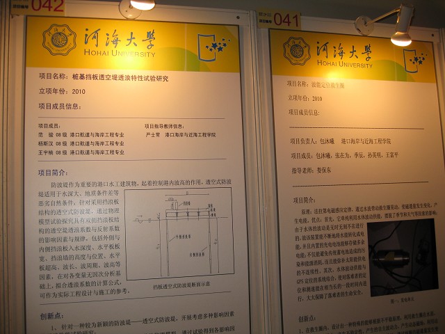 此次草莓视频 共有2项国家大学生创新性实验计划项目参加展示、1项创新性实验计划项目论文参加创新学术年会的交流;在我校项目展台前,由草莓视频 本科港航专业2008级包沐曦主持负责的项目“波能定位救生圈”与本科港航专业2008级范骏主持负责、严士常老师指导的项目“桩基挡板透空堤透浪特性试验研究”作了项目展板展示并同来自全国各高校的同学与老师进行深入交流,引起了专家和多个高校师生代表的浓厚兴趣。本科2008级港航强化班朱峰在创新学术年会上进行了题为“基于SPH方法的碎片穿甲数值模拟”论文研究内容汇报与学术交流,获得了专家组的好评。