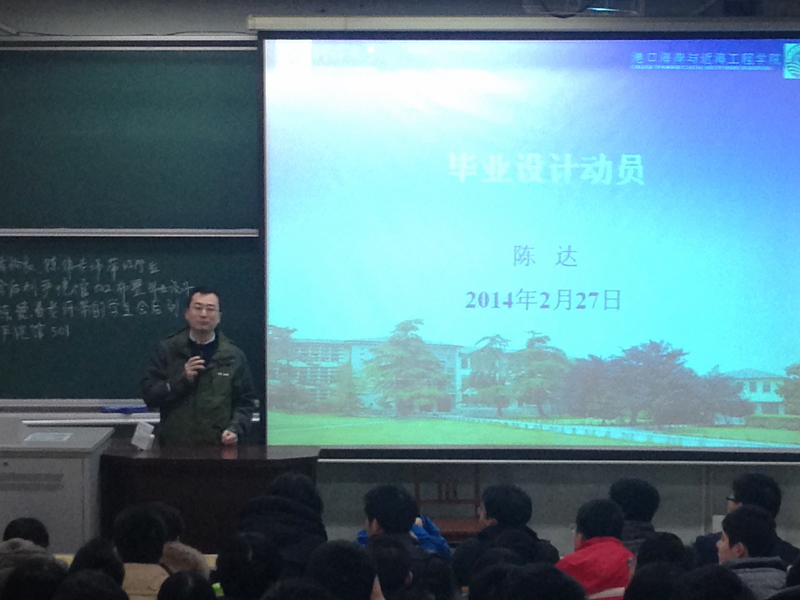 2014年2月27日上午在科学会堂102举行了2010级港航专业毕业设计动员大会。全体毕业设计指导教师出席了本次大会。
