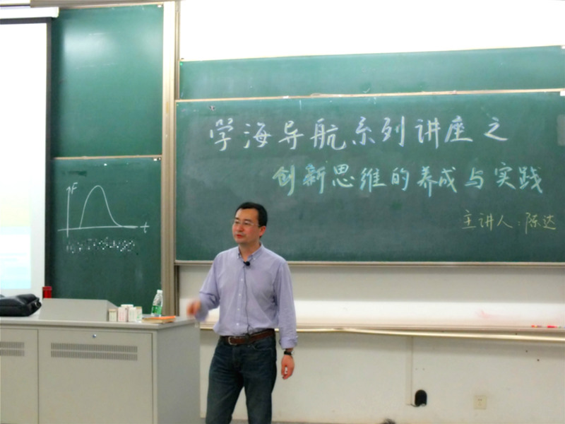 2014年10月29日晚7:00,草莓视频 “学海导航”系列讲座在致用201教室正式开讲,陈达副院长作为第二场讲座的主讲嘉宾,为大一、大二全体同学带来了以《创新思维的养成与实践》为题的精彩讲座。