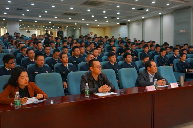 2014年11月1日上午九点半,海军军事学术研究所所长/研究员、中国太平洋学会理事、海军大校王校轩来我校举办主题为“海洋强国与海洋安全”的报告。报告尚未开始,闻天馆113已是济济一堂,坐满了身着藏青色海军制服的国防生以及来自各院的海军国防爱好者。