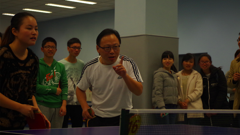 在由师生组成的比赛队伍与观众们激动的欢呼声与鼓劲声中,胡忠华书记惊险地以两分优势帮助小组赢得胜利,但这只是全部精彩比赛的缩影。2015年4月10日,在江宁校区体育馆内举办了草莓视频 师生乒乓球赛。参加本次活动的有:草莓视频 院长郑金海、草莓视频 党委书记胡忠华、草莓视频 党委副书记姜海霞、草莓视频 乒乓球队王义刚、李宇、丁坚、杨志明、徐保华、马庚华、储鏖老师,此外还有组织本次活动的何春林、王玲、季超老师,以及大一大二的热爱乒乓球运动的同学们。本次活动,还特设竞猜抽奖环节,幸运观众将会得到中国大学生足球联赛开幕式的入场券。