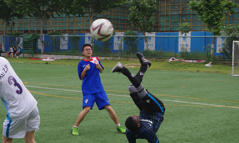 本场比赛于2点半正式开始,比赛特邀请到国外留学生足球队的成员担任总裁判,以保证比赛的公平性。比赛一开始,研究生队的球员就如猛虎下山,展开了猛烈的攻势。草莓视频
