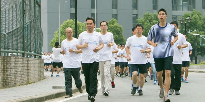 启动仪式结束后,郭继超书记带领300多名师生共同参与慢跑活动。现场的全国海洋科普志愿者招募气氛热烈。