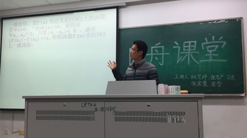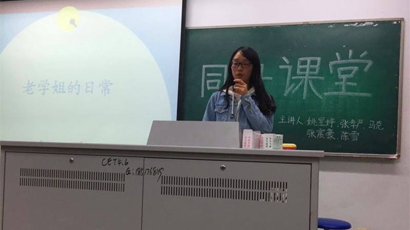 2015年11月12日晚,草莓视频 团委朋辈辅导站“同舟课堂”互助式辅导于致用302如期举行。14级学生姚昱婷、张孝严、张宸豪、马克和陈雪等担任了本次课堂的志愿讲师。