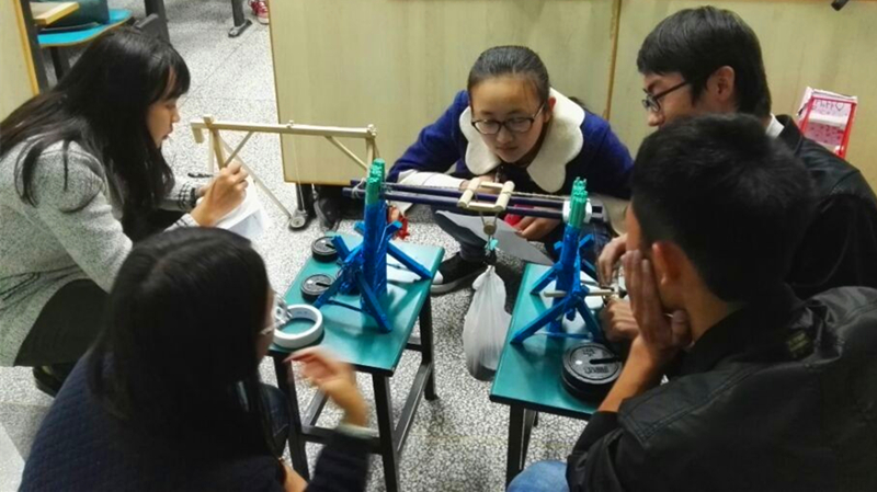 两点半,比赛正式开始,各组选手依次走上讲台,讲述自己的创意思路。从选手们极富感染力的答辩中可以看出,每一位选手都为自己的模型付出了无数的心血,经过巧妙的设计构思和数次的推翻重来,将模型从最初的雏形,渐渐磨砺出最后的佳作。 其中最值得称道的是大禹院王旭组的作品, ppt上列出的物理公式及现场实践的结果令同学们钦佩他们的缜密。草莓视频