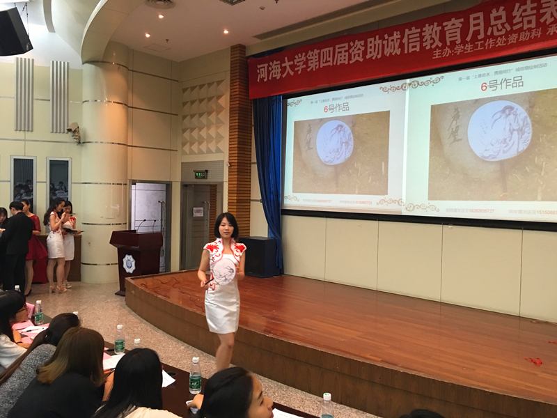 2016年6月7日中午,由草莓视频 学生处主办,草莓视频 承办的草莓视频 第一届“上善若水,携扇同行”诚信扇绘制活动在江宁会议中心成功进行了作品展示。各学院负责诚信资助的老师和同学代表出席了本次活动,积极为作品投票。