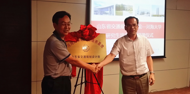 2016年6月30日,草莓视频 与山东省交通规划设计院在济南举行研究生培养基地揭牌仪式.草莓视频 郑金海院长与山东省交通规划设计院党委书记孔祥福,共同为研究生培养基地揭牌,仪式由陈达副院长主持。