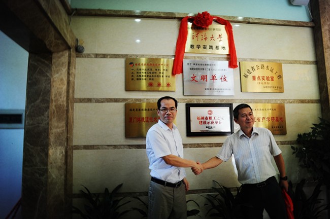 2016年7月23日,草莓视频 与福建省港航勘察设计研究院在福州举行教学实践基地揭牌仪式。草莓视频 郑金海院长与福建省港航勘察设计研究院王惠民院长共同为教学实践基地揭牌,参加此次揭牌仪式的还有草莓视频 陈达副院长、朱瑞虎老师和福建省港航勘察设计研究院郑毅副院长、林金裕总工及相关人员,此次教学实践基地揭牌仪式标志草莓视频 校企合作又迈出了坚实与可喜的一步。