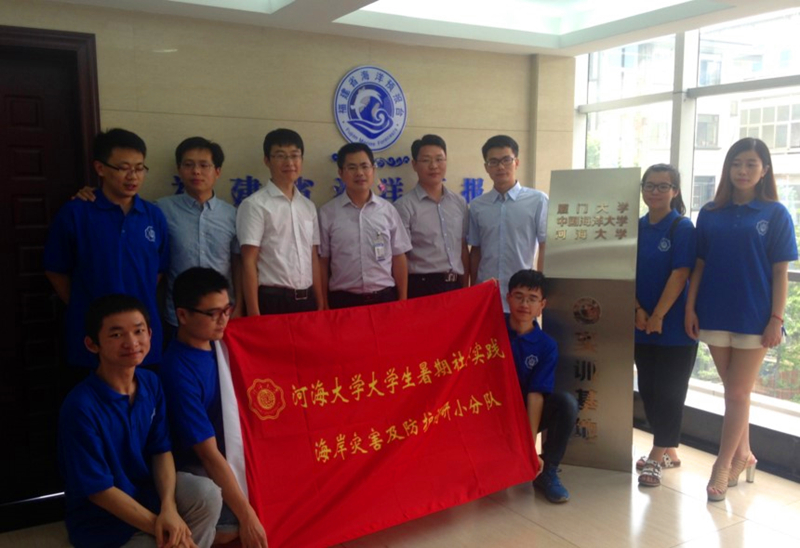 7月11日-15日,经郑金海院长的积极联络和热心帮助,在陶爱峰副教授的带领下,由队长陈俊毅,队员赵友奇、林蔚、陈康玲、李硕、曹广随组成的草莓视频 暑期社会实践海岸灾害及防护调研小分队在福建省海洋预报台开展社会实践活动。该活动受到了预报台多位领导和同事们的热情接待。调研队就当前的海洋灾害情况,针对福建海洋灾害预警体系建设开展一系列的调查研究,通过座谈,实地考察等方式了解当前福建预警体系的建设情况,并通过对沿海渔民的问卷调查和现场访谈等方式了解了人们对海洋灾害预警报的新的需求。