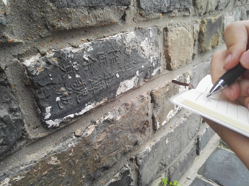 7月10日,调研团寻访南京市明城垣史博物馆,在博物馆讲解老师的解说下,查阅了馆内众多相关的文物资料和文献资料,观摩了明故宫的基础木桩和古代战争中使用的垒石等文物。重点观察研究了馆内收藏的明代城砖铭文,并在馆外城墙上进行了部分的问卷调查活动。