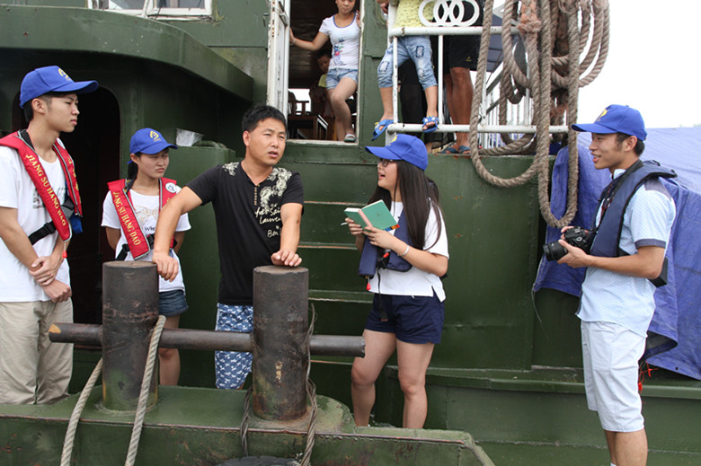 7月16日下午,实践团到达扬州邵伯船闸管理所,受到邵伯船闸管理所虞冰副所长的热情招待。短暂休整之后与虞所长带领队员们参观了邵伯船闸,向队员们介绍了邵伯船闸的基本情况。次日,实践小组到邵伯船闸周边小镇和街道上分发调查问卷,与邵伯镇居民亲切交流。在居民的帮助下,总共完成90份问卷,并最终得出了一份完整的问卷分析。之后,实践团联系到邵伯船闸管理所团支部书记刘浩然,并在刘书记的带领下,乘坐航政艇到达邵伯船闸上游待闸区与邵伯船闸志愿者们共同进行大运河环保活动,打捞河道内垃圾,并到待闸船只与船员们进行交流,向船员们宣传环保知识。在虞所长的安排下,实践团成员们与邵伯船闸管理所各部门负责人一起开展了座谈会。船闸各部门负责人解答了同学们关于邵伯船闸、就业方向、专业认知等各方面的问题,并对实践队员们的专业学习提出了宝贵建议。最后,实践团参观了邵伯船闸历史博物馆和古运河、古堤遗址。虞所长通过视频演示等方法向成员们讲解了邵伯船闸从邵伯埭开始的1600年的历史,在历史维度上加深了队员们对于邵伯船闸和古运河的认识。