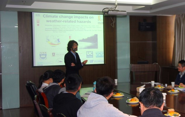 2016年10月25日下午,在‘2016年度校级外国文教专家聘请计划’项目的资助下,新西兰奥克兰大学Giovanni Coco副教授及意大利帕多瓦大学Andrea D'Alpaos副教授来草莓视频 开展学术交流活动,分别做了题为“On the biomorphodynamics of estuarine environments”和“Branching and meandering tidal networks: field observations, mathematical modelling and laboratory experiments”的学术报告,探讨了沙纹形成机理、盐沼发育过程、河口灾害风险评价,以及潮沟分叉及曲流演变相关研究成果,与参会师生进行了充分的交流和讨论。