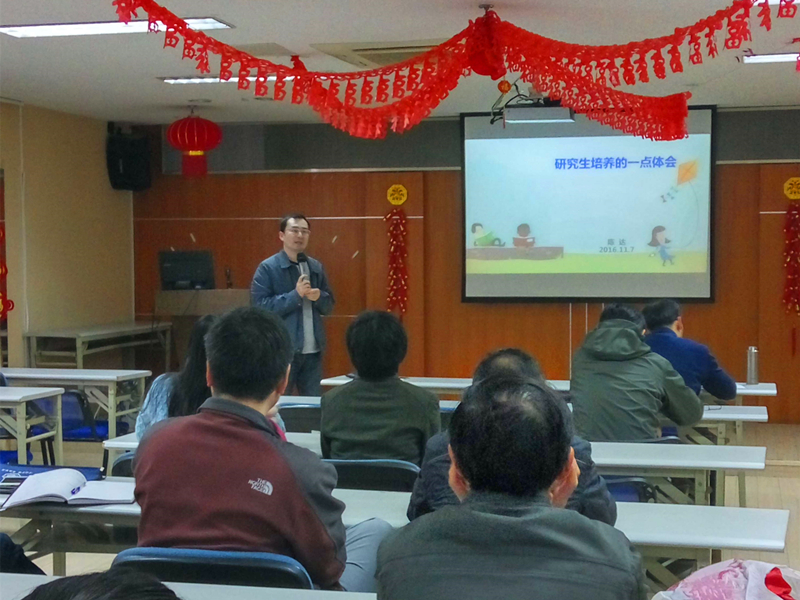 草莓视频 开展了本学期第五次人才培养经验系列交流研讨活动,11月7日中午以午餐会形式邀请江苏省优秀硕士论文指导教师,草莓视频 陈达教授作了题为“研究生培养的一点体会”的报告,在报告中有互动、提问、交流环节,给参与研讨学习的老师有较大的启发和帮助,进一步加强过程管理,提高研究生培养质量。