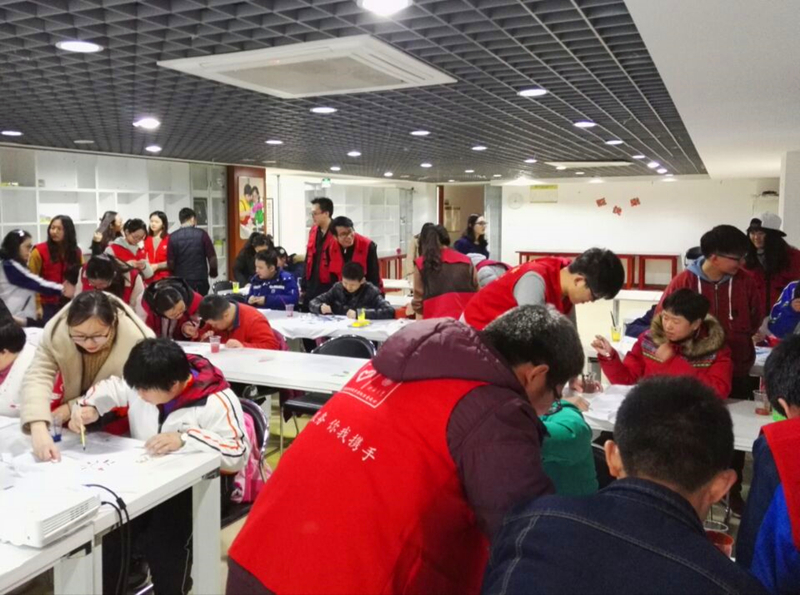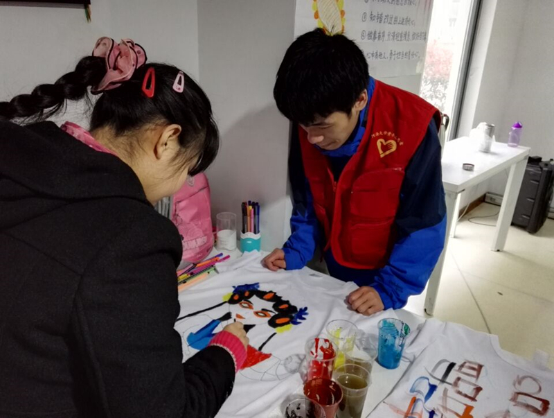 志愿者们到了宁馨阳光家园,一个小队留在宁馨阳光家园与孩子们一起完成文化衫彩绘,一个小队前往附近人流量较多的地带宣传世界水日相关知识。在宁馨阳光家园内,志愿者们与孩子们一一配对,与孩子们交流水文化、水资源保护等小知识,并引导孩子们用水彩、画笔等在文化衫上创作出自己对水的理解和感悟。社区街道上,志愿者们向市民介绍世界水日,讲解生活中的惜水、护水小妙招,并邀请市民在世界水日的宣传横幅上签名。
