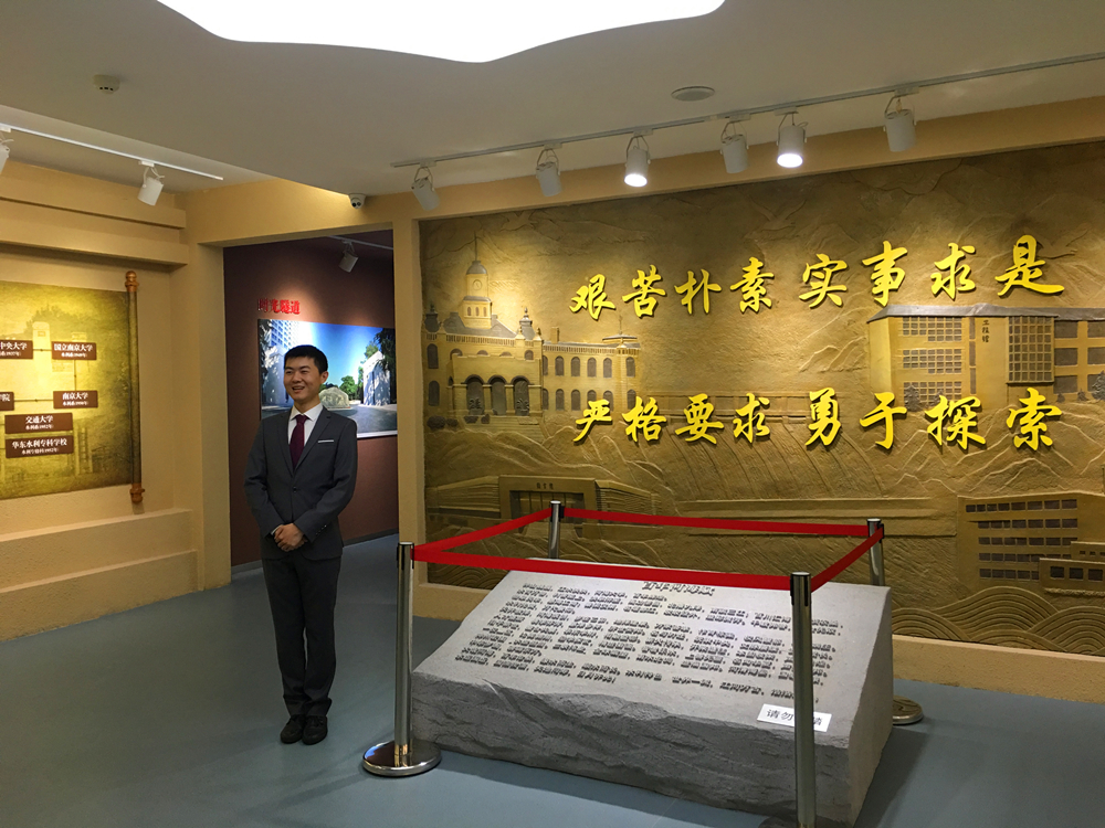下午4点30分,在结束当天毕业设计任务之后,同学们准时在校史馆外有序聚集。2013级本科生辅导员王玲老师做了此次主题教育活动的详细介绍,并强调了活动的意义。之后,在草莓视频 学生讲解员张壮、魏嘉琪、王艺铮、曹向明四名同学的带领下,开始了校史馆的参观。同学们先后参观了“老河海”时期展厅、“华东水利学院”时期展厅和“新河海”时期展厅,在重温河海百年变迁的同时,也为当年学校先进的治学理念和先辈们严谨的治学态度所激励,为一代代河海人为水利事业作出的努力和奉献而感动。讲解员的解说抑扬顿挫、激情澎湃,同学们听得格外认真,内心震撼。作为港航学子,大家集体参观了严恺先生陈列室,通过重温严老的经历和生动故事,再一次感受着河海校训的深刻内涵。