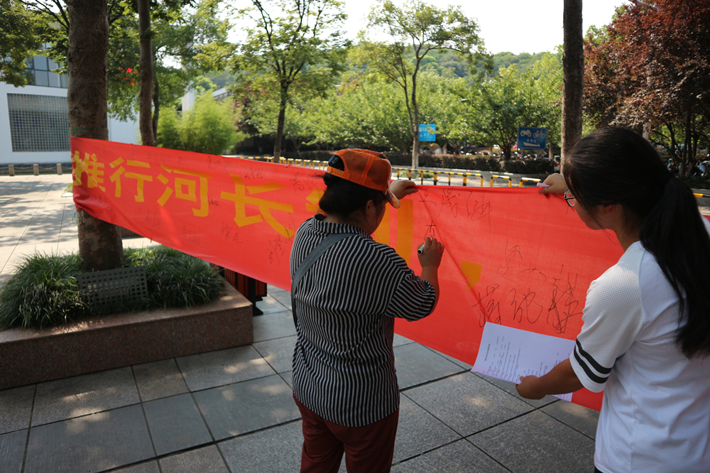 最后,成员们决定将一周来的收获通过街头宣讲、网络宣传的形式传递给更多的市民。成员们共计收回了线上线下317份调查问卷,线上通过QQ、微信、微博发放问卷,线下在塔弄、引线街、图书馆附近发放150份调查问卷。问卷调查了市民对常熟河流水环境的关注和了解状况、对解决水污染问题的态度和决心以及对河长制开展情况的了解和看法,并针对其中的问题进行分析,同时向每一位对“河长制”表露出疑惑的市民解释河长制的内容与重要性。在成员的不懈努力下,得到了不少市民的签名支持,也希望他们能将河长制的观念传递给身边的人。