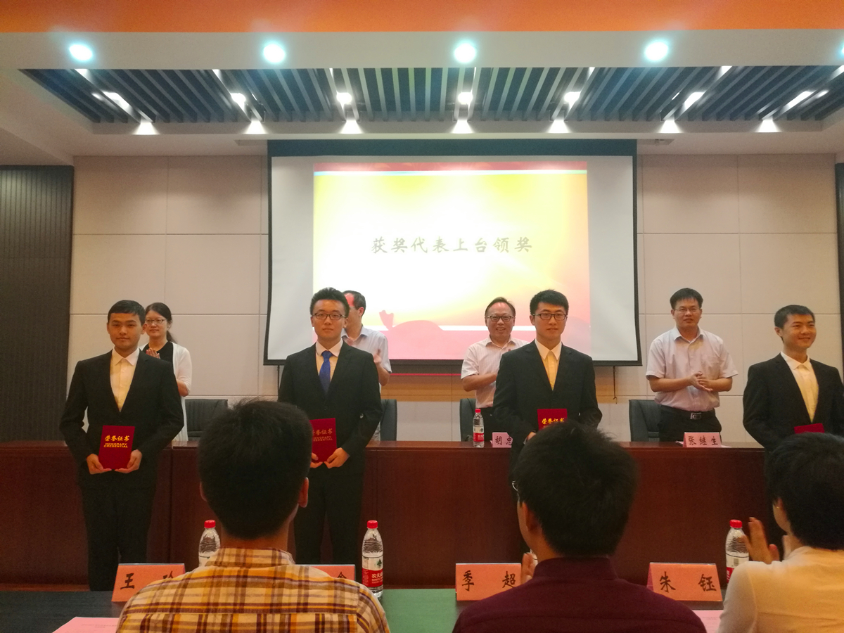 典礼在庄严的国歌中开始。首先,胡忠华书记代表学院对获奖的学生表示了祝贺,同时也借此机会对大一新生提出了几点殷切的期望:1、要学习楷模,健全人格,成为一个追求高尚的人;2、要刻苦学习,注重创新,成为一个全面的人;3、要乐于协作,甘于奉献,成为一个卓越的人。随后,张继生副院长宣读了表彰决定,获奖的优秀学生代表上台接受了表彰并与领导们合影。