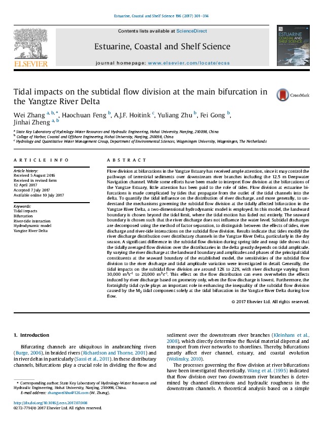 草莓视频 张蔚教授、王韫玮副研究员、季小梅副教授、张俞老师、徐龑文博士后等师生一行8人参加了此次会议。会上,张蔚教授做了题为“Subtidal Flow Division at Tidal River Bifurcations in the Yangtze River Delta”的报告,王韫玮副研究员做了题为“Coupling Bedform Roughness and Sediment Grain-Size Sorting in Modelling of Tidal Inlet Incision”的报告,徐龑文博士后做了题为“Analytical Solution for Salt Intrusion in Estuary with Multi-River-Source”的报告,季小梅副教授做了题为“Numerical Study of Seasonal Circulation and Variability over the Inner Shelf of the Northern South China Sea”的会议展板。其中,张蔚教授在会议上介绍的潮波运动对汊口分流理论的创新研究成果已于近期在河口海岸权威期刊《Estuarine, Coastal and Shelf Science》(196:301-314)上发表。通过此次会议,与会师生就河口海岸相关科学问题中的研究难点、热点与国内外专家、同行进行了探讨,为今后更深层次的交流与合作创造了机会。