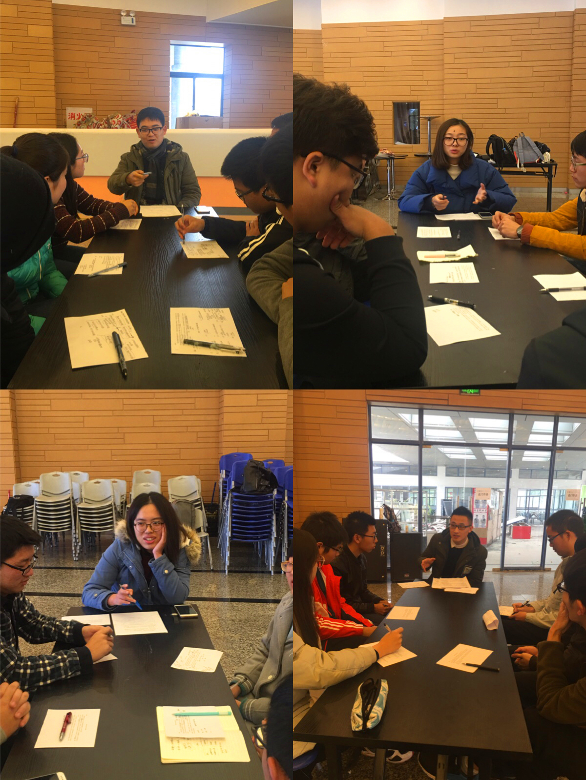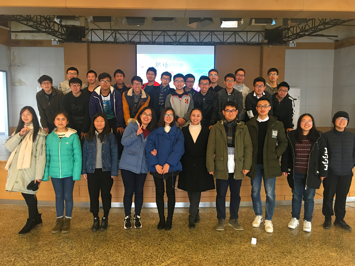 职业生涯规划伴随着大学四年的进程,本次团日活动可以作为一次初体验。活动分为破冰、面试、分享三个环节。破冰环节中,大家与四位学长学姐玩起了生动有趣的“你画我猜”游戏,拉近了彼此的距离,活跃了现场气氛。针对公司招聘和组织面试中经常运用无领导小组讨论作为选拔人才方式的现状,活动设置了模拟招聘单元,特别安排面试环节,组织大家现场进行无领导小组讨论。同学们分为四组,讨论的议题取材于同学们的学习和生活,大家有话可说,有感可发。曹向明、苏俊伟、陈璐莹和郜宁静四位学长学姐分别作为各小组的观察者,针对同学们在讨论中的发言和表现在最后进行了点评,并做了有针对性地指导。随后的分享环节以新闻发布会的形式展开,四位学长学姐做了简单的“青春故事”分享,之后同学们充当记者向学长学姐们进行提问,同学们从科研方向问到职业生涯规划,从大学四年安排问到具体学习方法,从社会实践工作问到自我能力提升。学长学姐们分别对其一一进行详细的解答和指导,现场气氛热烈。