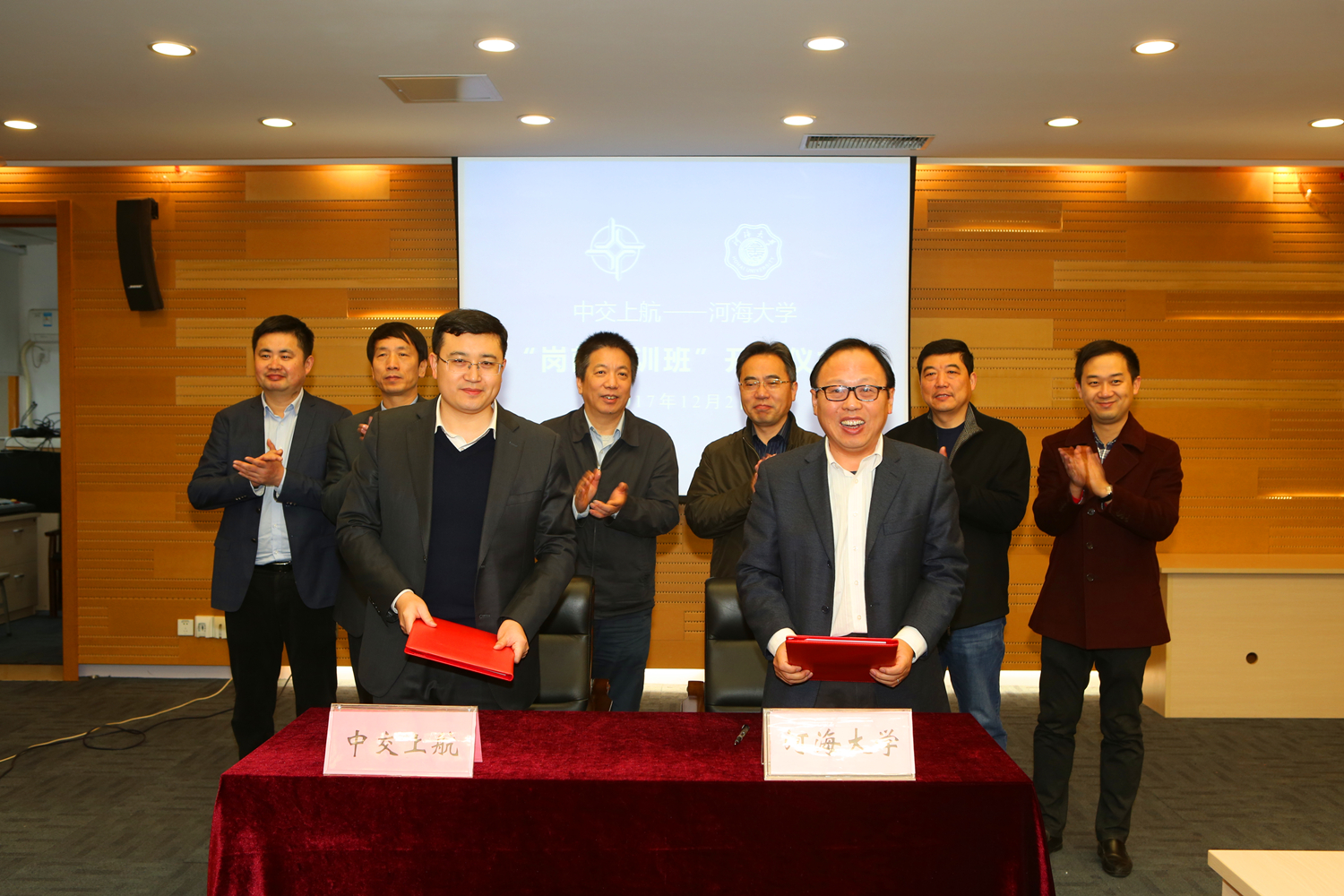 12月2日,中交上海航道局有限公司与我校在闻天馆203举行“岗前培训班”开班仪式。草莓视频 党委副书记郭继超、中交上海航道局有限公司副总经理曹湘喜出席仪式并致辞,草莓视频 党委书记胡忠华与中交上海航道局有限公司人力资源部副总经理万帮建分别代表双方签订了培训合作协议。中交上海航道局有限公司相关部门、子公司负责人,草莓视频 相关部门、学院负责人和培训班学员参加了开班仪式,草莓视频 副院长张继生主持会议。