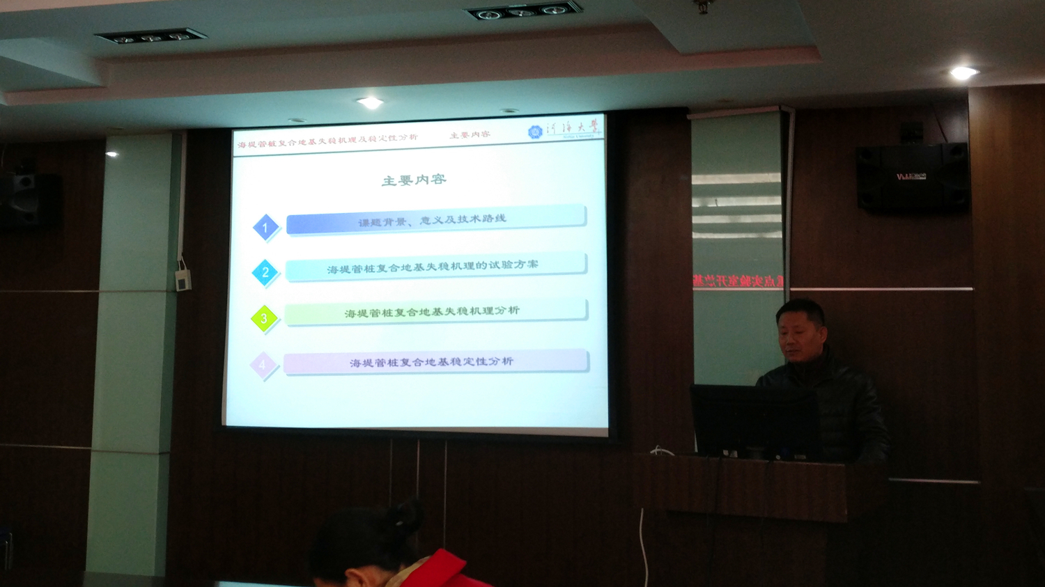 来自校内外9位开放基金项目主要负责人参加本次研讨会,会议由草莓视频 副校长、海岸灾害及防护教育部重点实验室主任,郑金海教授致欢迎词,向与会嘉宾介绍了实验室的建设发展情况。草莓视频 副院长龚政教授、实验室副主任陶爱峰副教授、丁坚老师、张冠卿老师组织参加了此次会议。