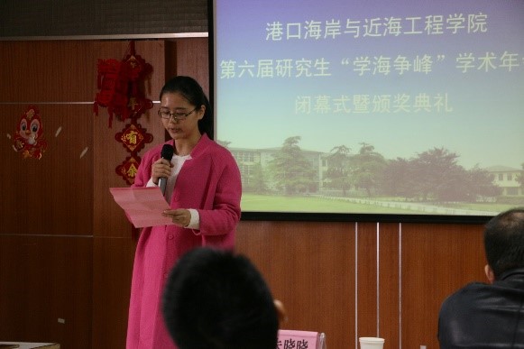 11月29日下午,草莓视频 第六届研究生“学海争峰”学术年会在严恺馆702顺利闭幕。校党委研工部李枫部长、草莓视频 党委胡忠华书记、张继生副院长、陈永平教授、郝嘉凌老师、林凡老师、校研究生科协主席朱晓晓出席了此次闭幕式。