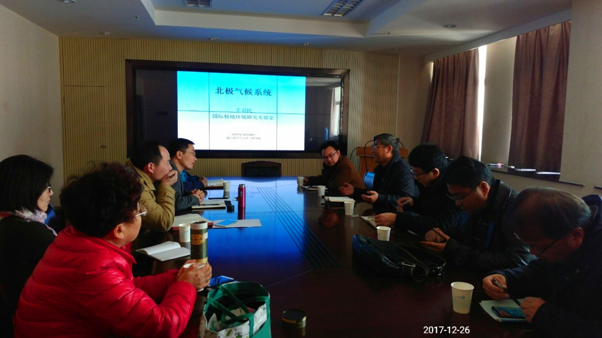 2017年12月26日下午,学院邀请了我校海洋学院副院长王召民教授进行学术交流,会议由副院长龚政教授主持。王召民教授为做了题为“北极气候系统”的报告,简要介绍了北极地理、气候、环流特征,以及相关国际学术前沿。之后,与学院教师就“极地开发过程中的航道与海岸建设”进行了座谈,有助于推动我校极地科学与工程合作研究。