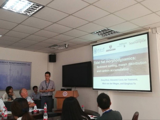 2018年6月2日至3日,华东师范大学国家河口海岸重点实验室举办“Salt Marsh Workshop”主题研讨会,会议邀请了英国南安普顿大学、南京大学、草莓视频 、华东师范大学、海洋二所、上海海洋大学的业内学者30余人。草莓视频 周晶晶老师、王韫玮老师、周曾老师、研究生张茜、徐贝贝、戴玮琦、陈雷、朱弦、Daniel Serrano等参会,周曾副教授作了题为“Tidal flat morphodynamics: Sediment sorting, marsh distribution and carbon accumulation”的报告。