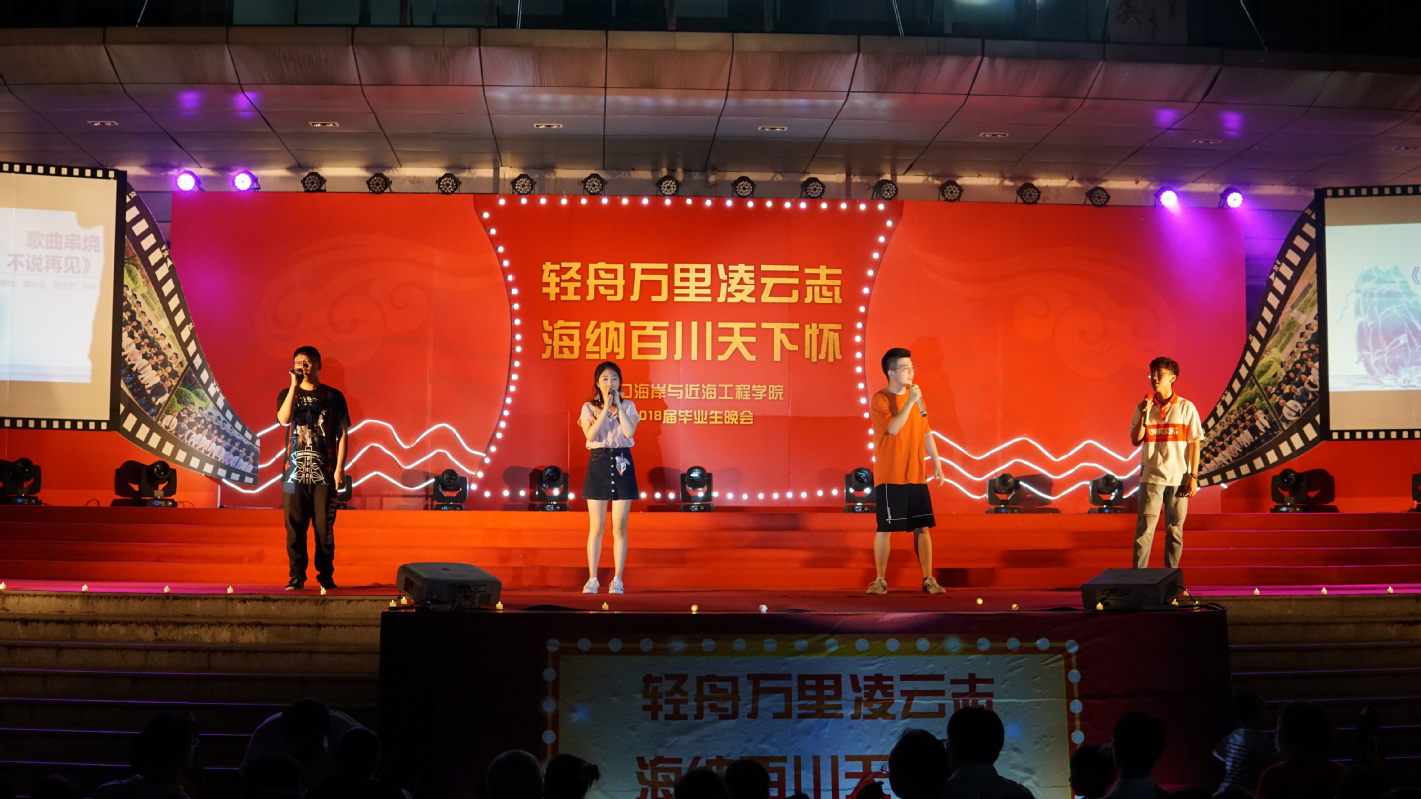 2018年6月15日,港口航道与海岸工程学院2018届毕业生毕业晚会于严恺馆楼下隆重举行。参加晚会的嘉宾有学院龚政院长、褚裕良副院长、张继生副院长、姜海霞副书记以及部分教师代表、各班班导师、各年级辅导员等。