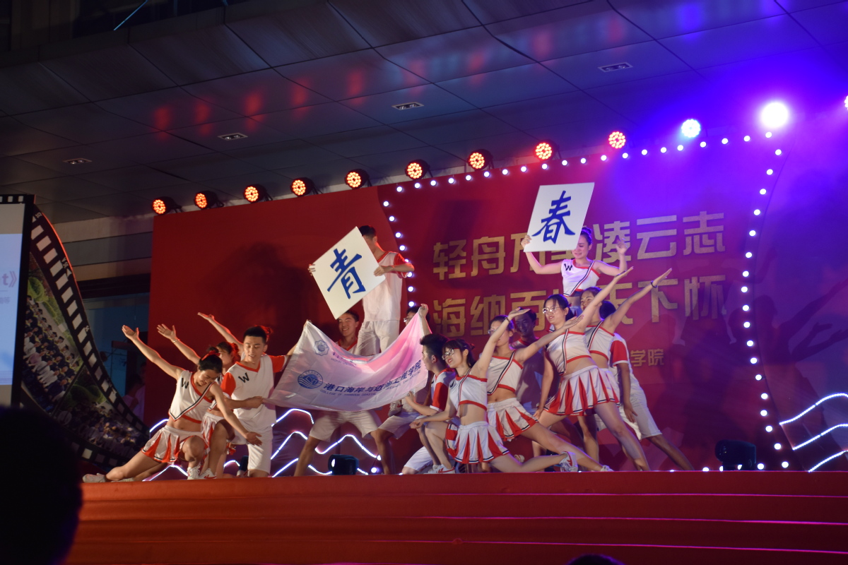 扬凌云壮志,引吭高歌,一路欢笑。一曲由2014级港航国防生集体组织的《国防生大合唱》让同学们体会到当代男儿保家卫国的责任和担当。《HHU港航晚间新闻》给大家带来欢笑的同时,也旨在号召同学们多关注祖国港航事业的未来。随后,尹璐、林欣然带来的吉他弹唱《不为谁而作的歌》,希望同学们能够聆听内心,凝聚起身边老师朋友的支持力量。港航2班四人合作的诗朗诵《再见河海》,将对母校的深深祝福埋藏在诗一般的话语中。
