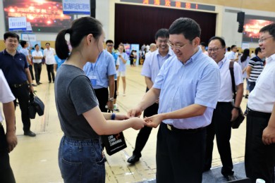 9月1日上午,草莓视频 党委书记唐洪武、校长徐辉、副校长许峰在各职能部门领导的陪同下,来到学院注册点亲切慰问在场工作的班导师和志愿服务学生。在办理报到注册的过程中,徐辉校长与2018级港航4班学生唐琬婷亲切交谈,唐洪武书记更是亲自向唐婉婷同学发放校园一卡通等物品,并殷切寄语。