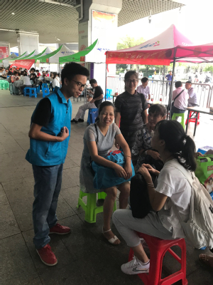 在今年的迎新工作中,草莓视频 承担了南京火车站南广场的迎新志愿服务工作。草莓视频 2017级志愿者们身着统一的蓝色志愿者服装,精神饱满,热情洋溢,在南京站迎新接待点迎接新生及家长的到来,耐心地解答他们的问题,并积极引导,协助他们进行行李的搬运和装卸。他们热情的服务态度、高效的办事效率,赢得了新生和家长的肯定。