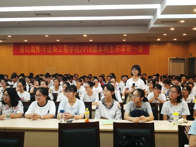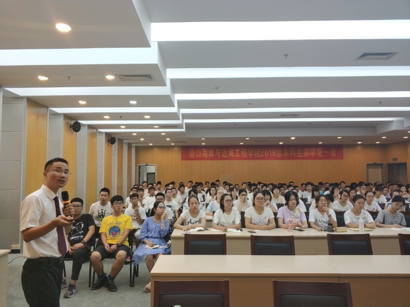 开学典礼后,龚政院长给草莓视频 2018级全体新生讲授开学第一课。龚院长从学校悠久的历史讲述到学院光辉的历程,结合时代背景和国家战略,谈港航专业的内涵和发展,他用“舟楫之便,向海而兴”八个字强调了港航专业的意义与优势所在,他指出,无论国内还是国外,在很多重点水利工程的设计和建设中都能看到港航人的身影,同学们应以此为傲,也应为此而奋斗努力。同时,龚院长从新生的视角,深入浅出地引导新生结合专业尽早确立目标、规划大学生活,书写自己无悔的青春。新生对开学第一课兴趣浓厚,现场提出很多问题,龚院长一一答疑解惑。