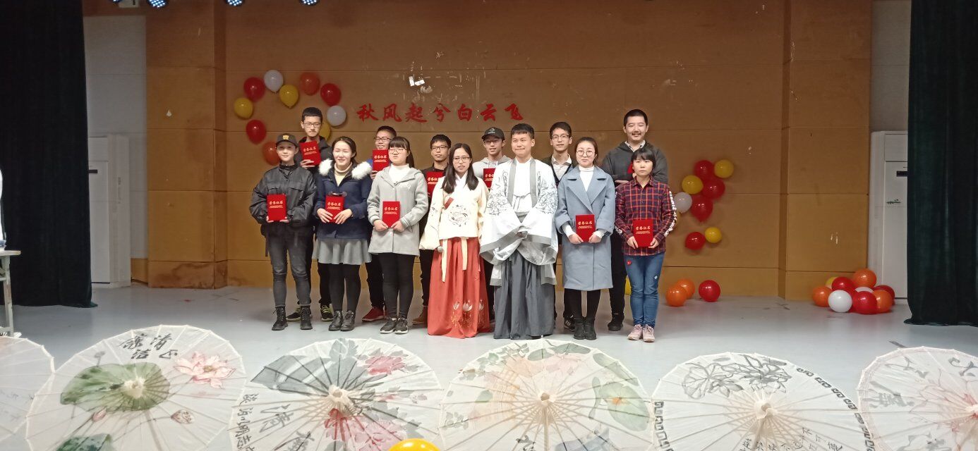 下午三点,身着汉服的主持人姜新怡和杨晨带领大家一同欣赏了由孙齐龙同学带来的朗诵节目《故都的秋》后,比赛正式开始。此次比赛共分为两轮,分别考验选手的成语和诗词储备,各组选手争分夺秒,奋笔疾书。第一轮比赛以书写秋的成语为题,考验选手们对于诗词基础知识的积累,最终写出最多的五只队伍晋级第二轮。中场休息时赵润泽同学为大家带来了古琴表演,舒缓了比赛中紧张的气氛。第二轮采取抢答的模式,依次进行了“寻诗接句”、“看图识诗”、“飞花令”,不仅要求选手拥有深厚的诗词底蕴,更考验着临场的反应能力,而选手们激烈的比拼将活动气氛推向了高潮。最终,第2组、第4组、第5组的参赛者分别摘得此次诗词大会的冠亚季军。本次活动在获奖小组的合影和同学们的欢声笑语中落下了帷幕。