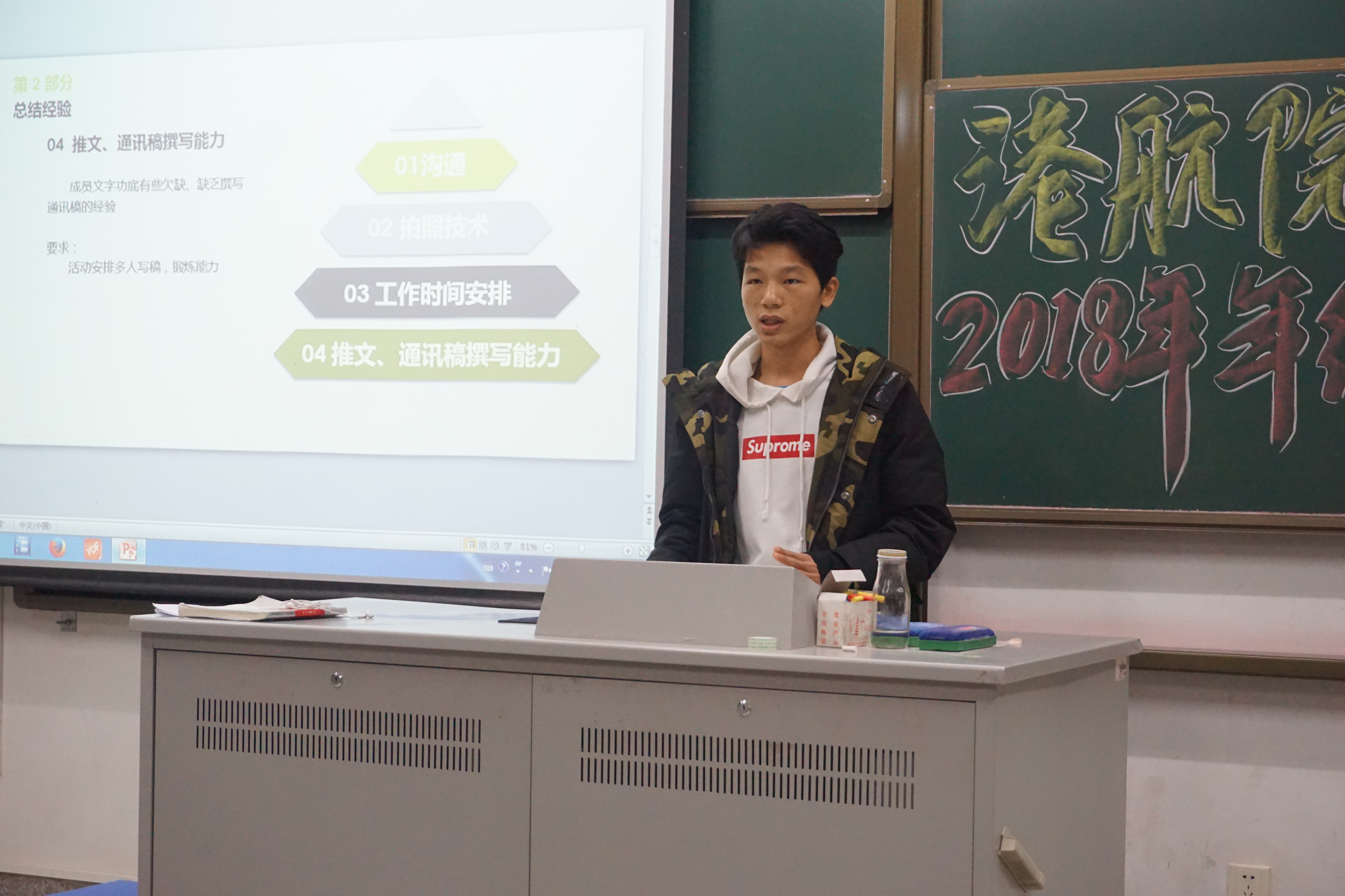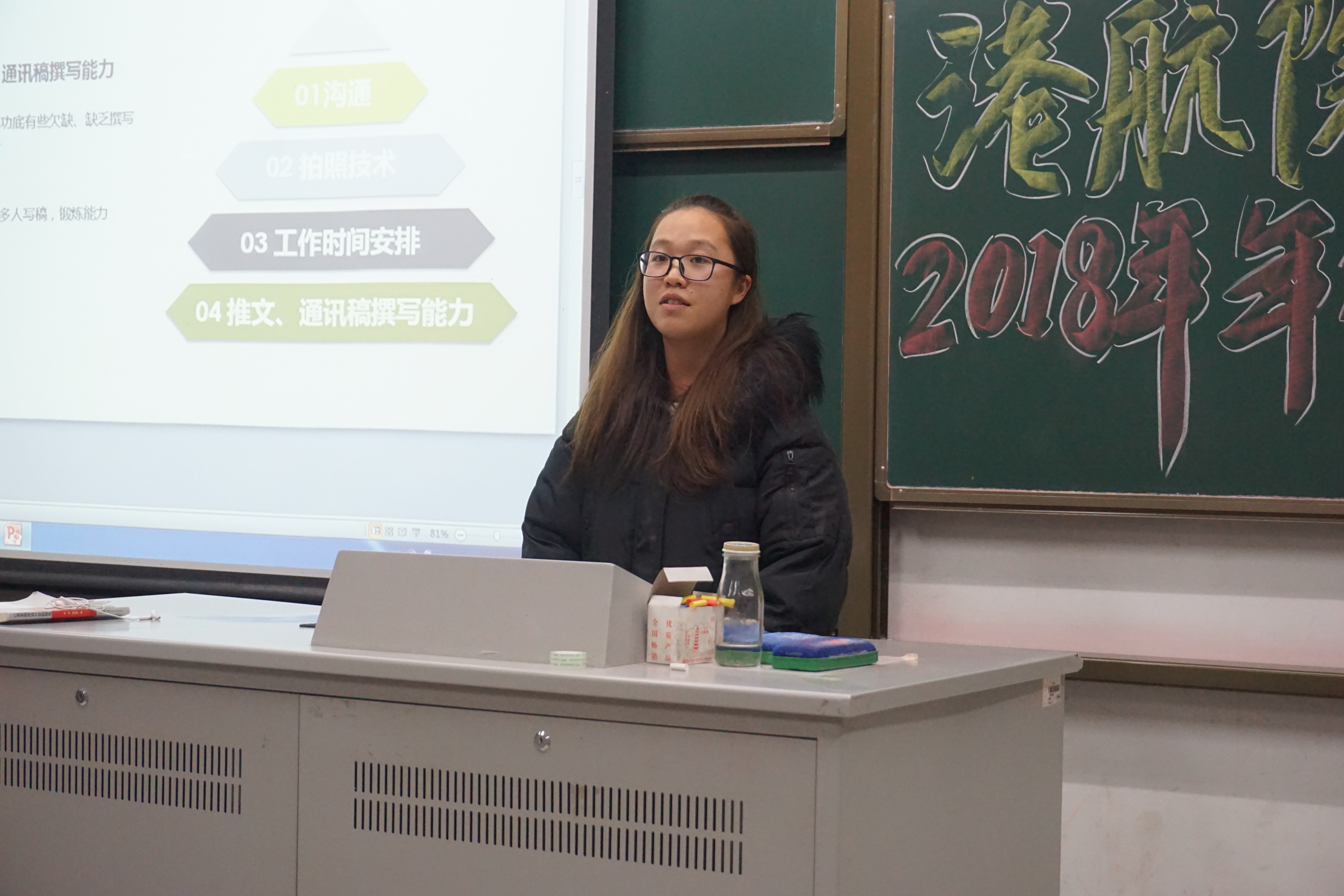 对于学生科协的工作,学生科协副主席范琦琦将之概述为“能力、合作、担当”,而后展示了如校史讲解大赛、“梦想工程师”水工模型大赛等一些举办较为成功的活动,并针对各部门工作中不足之处,提出应对方案,并提出对组织干事自身的素养要求。