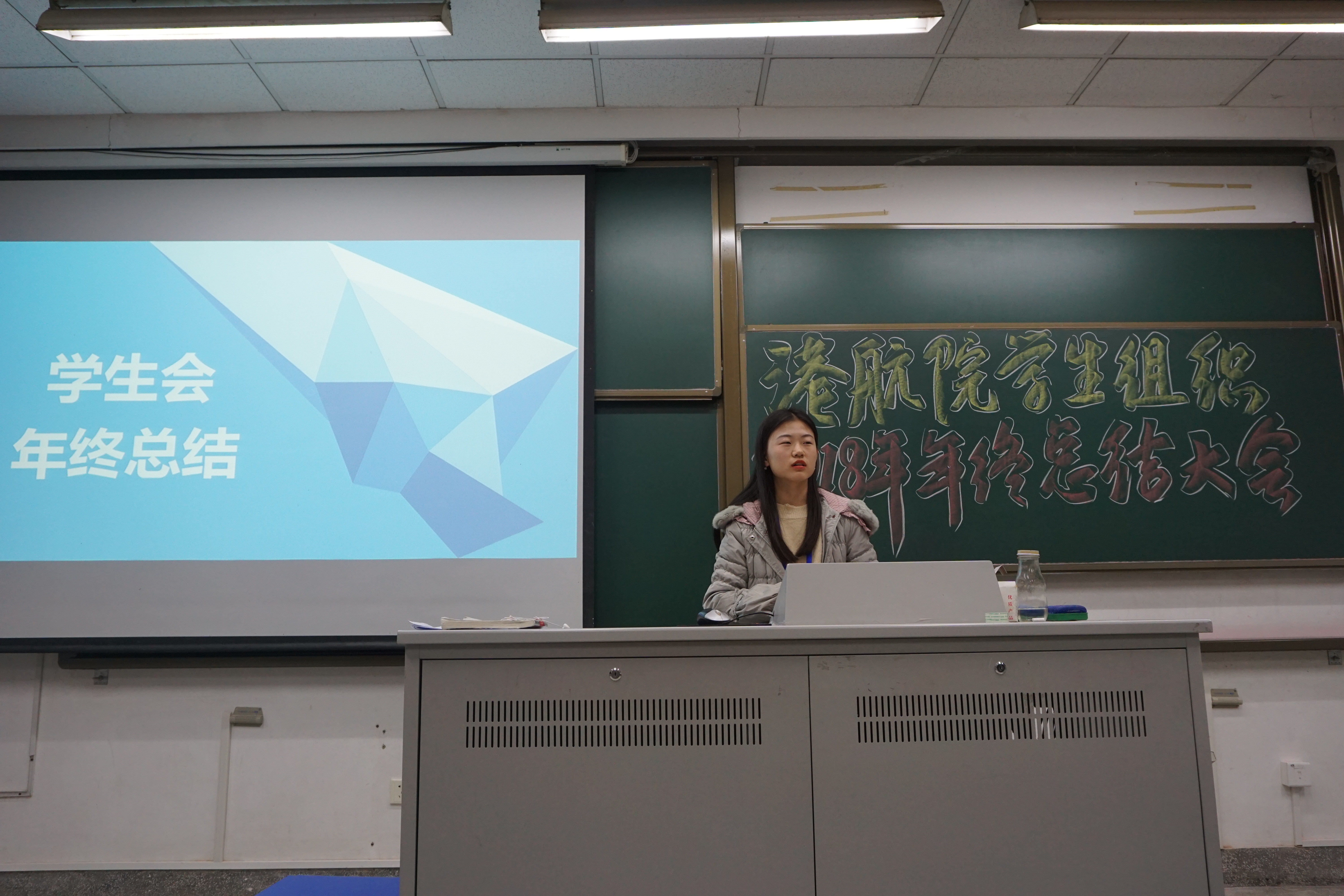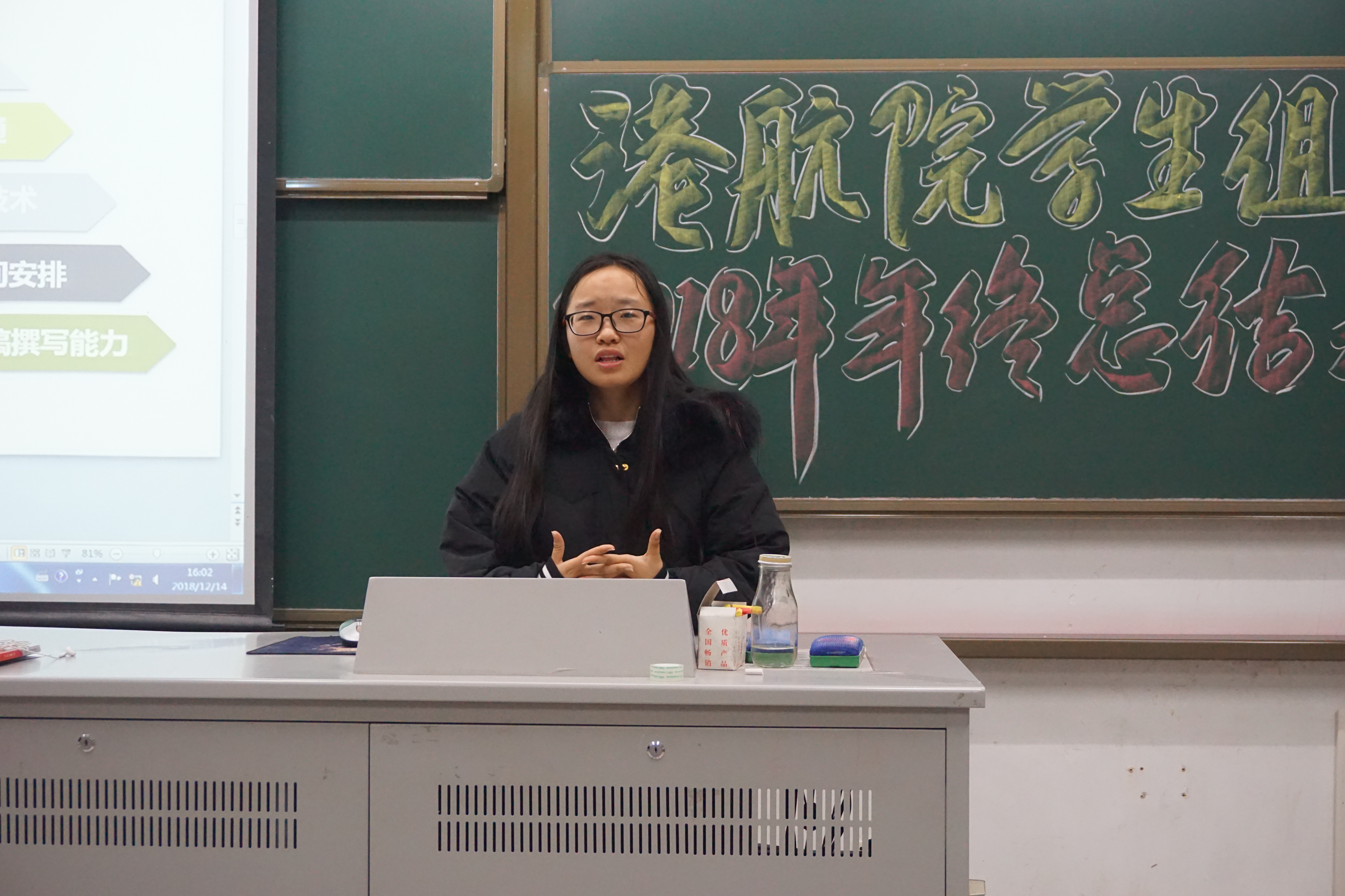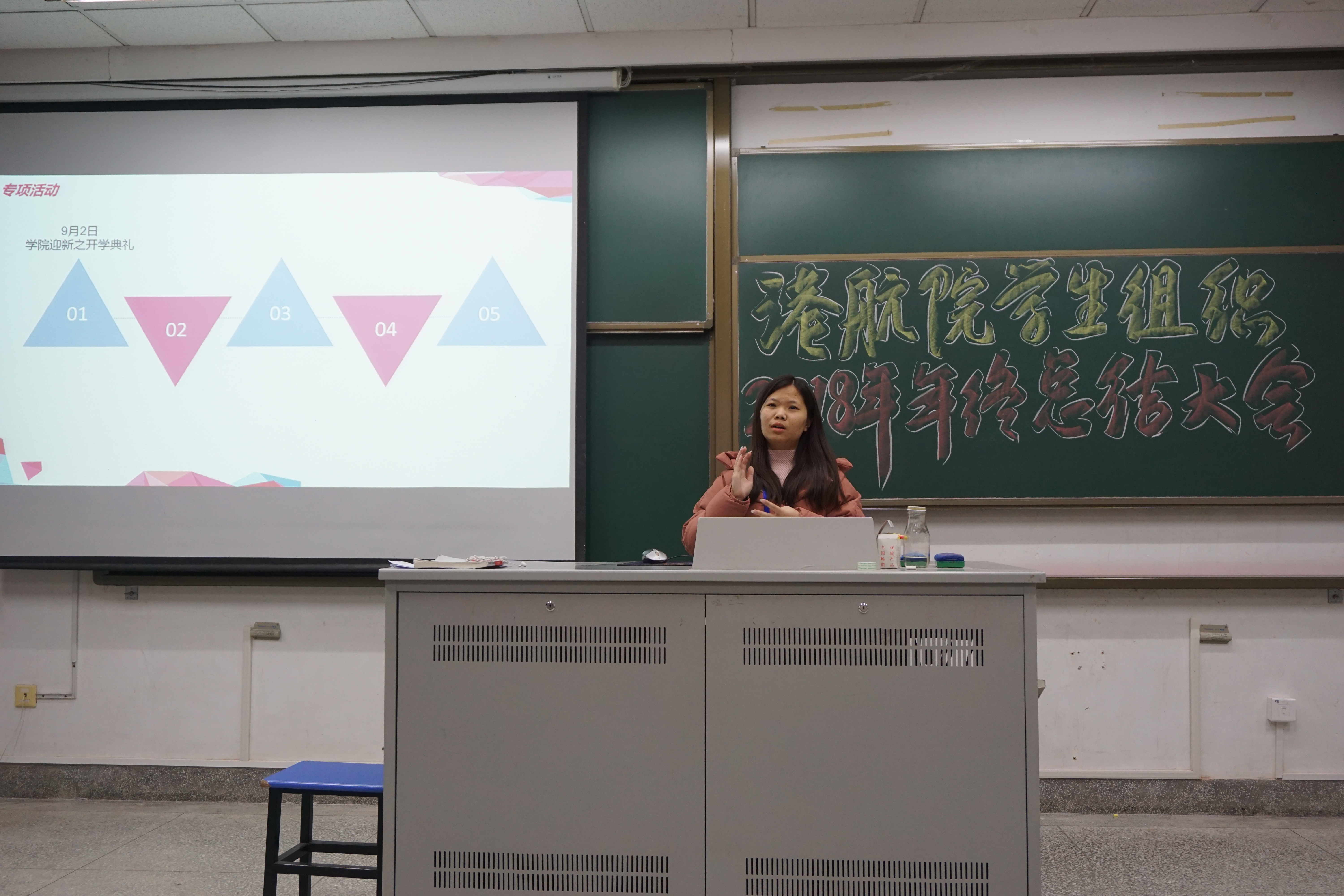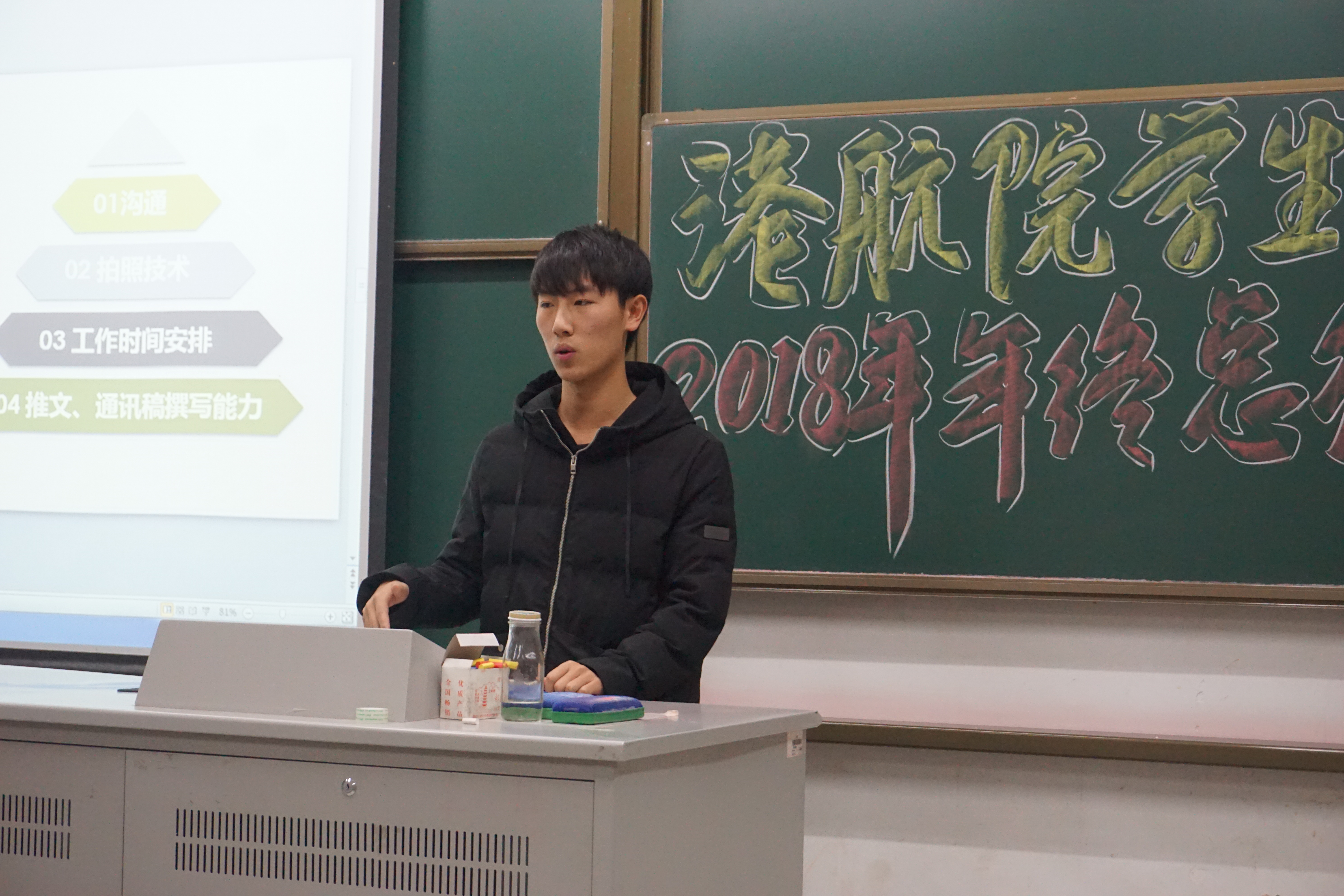 2018年度学生组织工作年终总结会在江宁校区致用117教室举行。会议由学院团委书记王玲老师主持,学院团委办公室、学生会、学生科协以及传媒中心的学生干部及干事参加了本次会议。