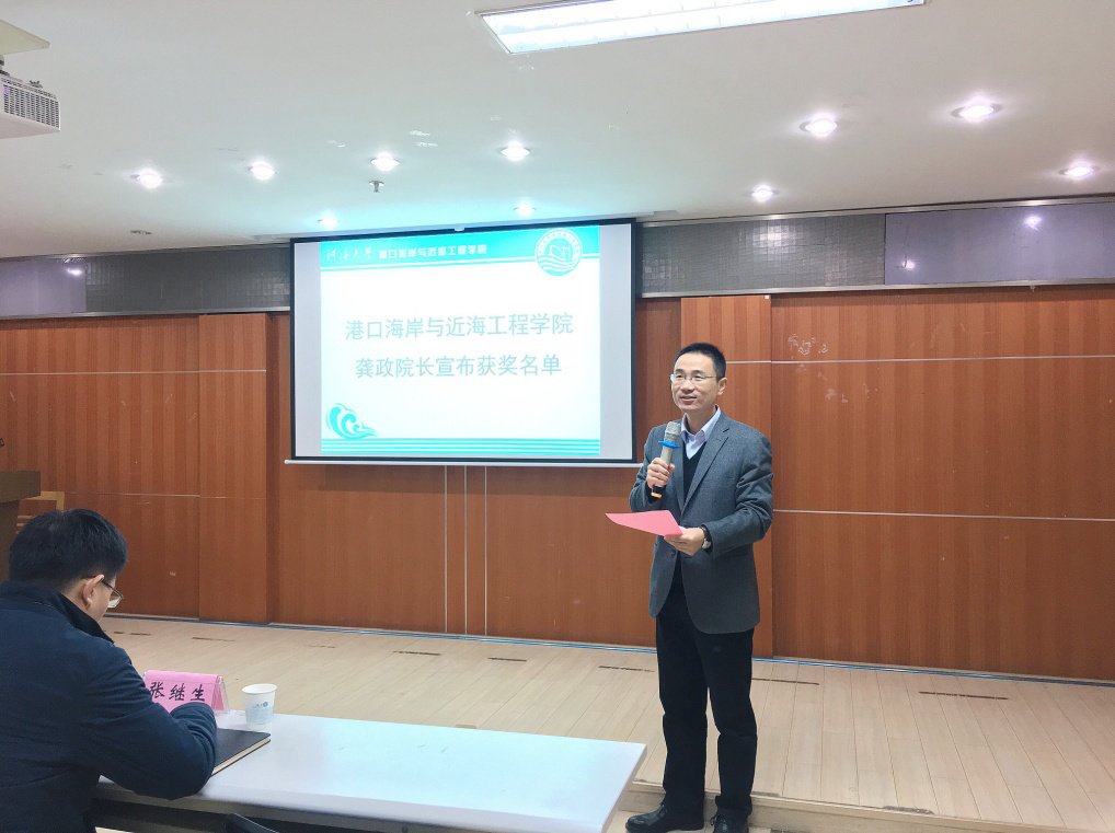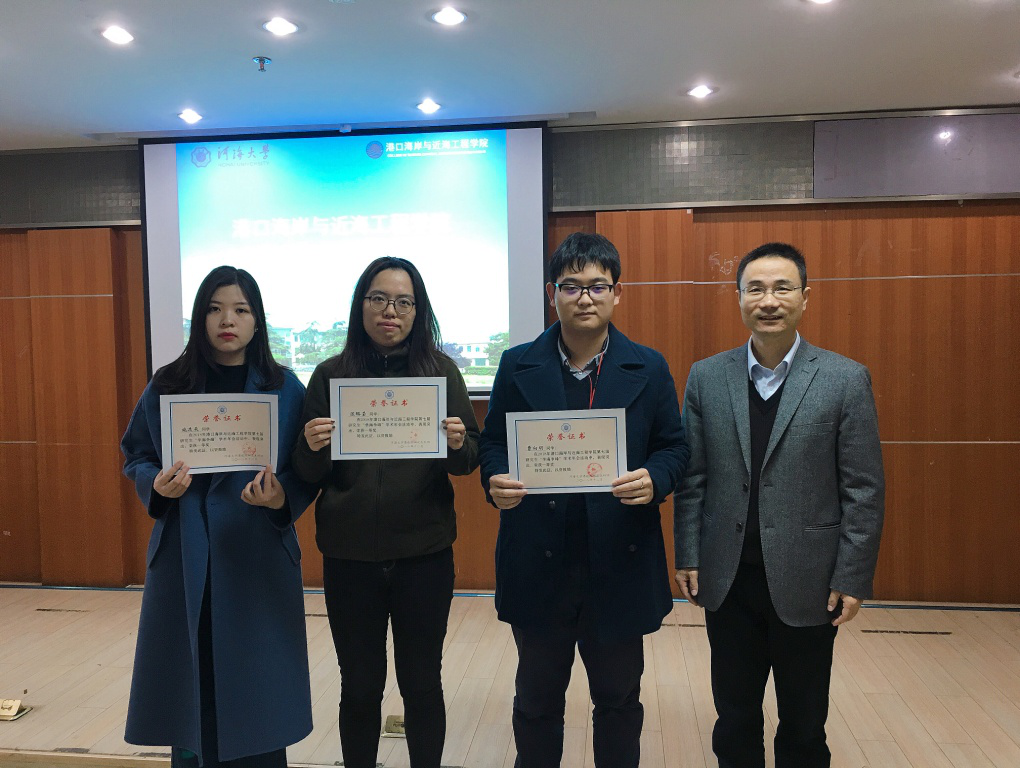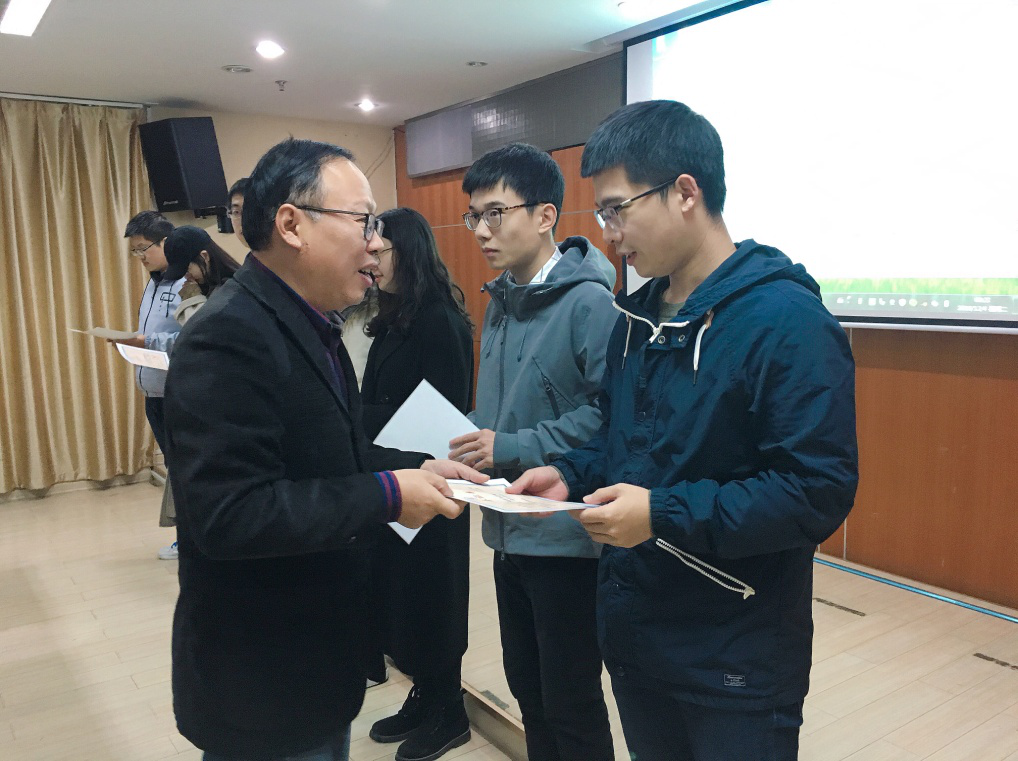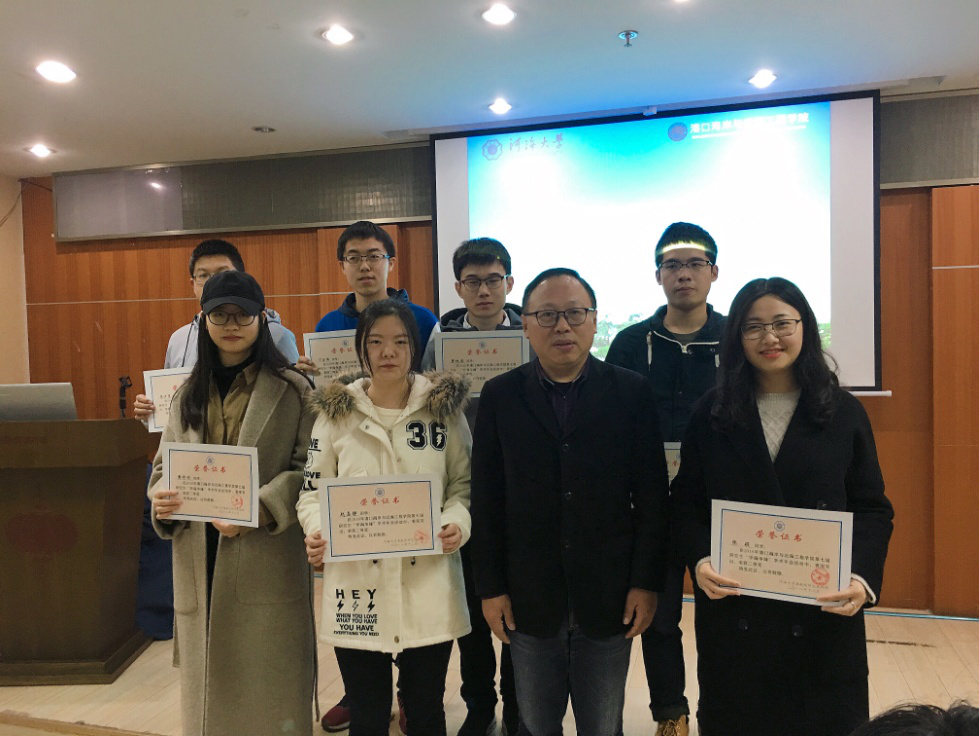 龚政院长宣布获奖者名单,并与胡忠华书记、张继生副院长和姜海霞副书记为获奖同学颁奖并合影留念。