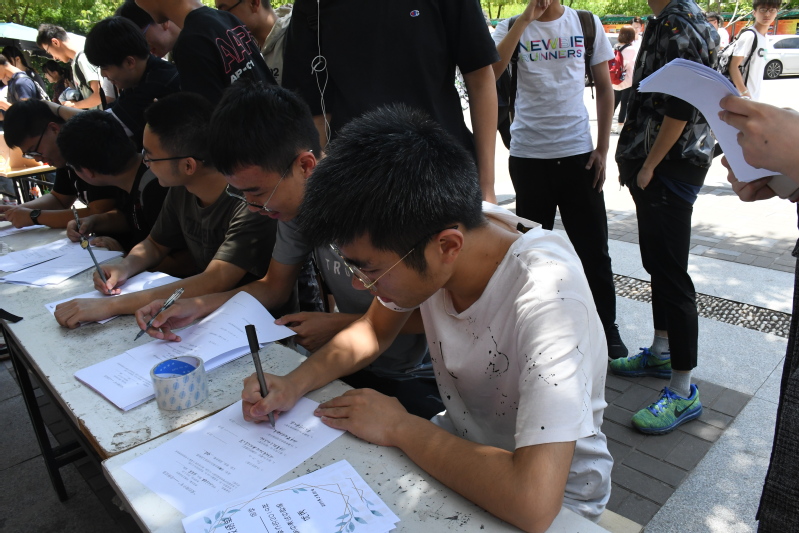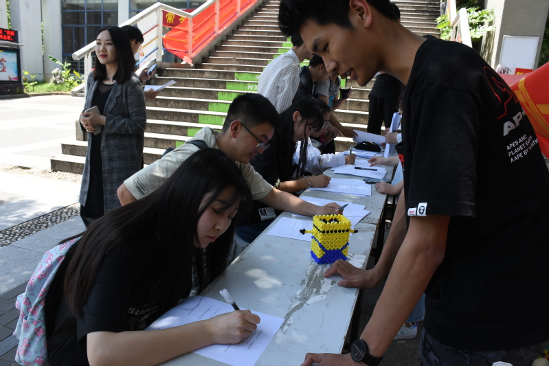 2019年5月20日11时至13时,草莓视频 在江宁校区六食堂前顺利举办“爱的期中考”活动。