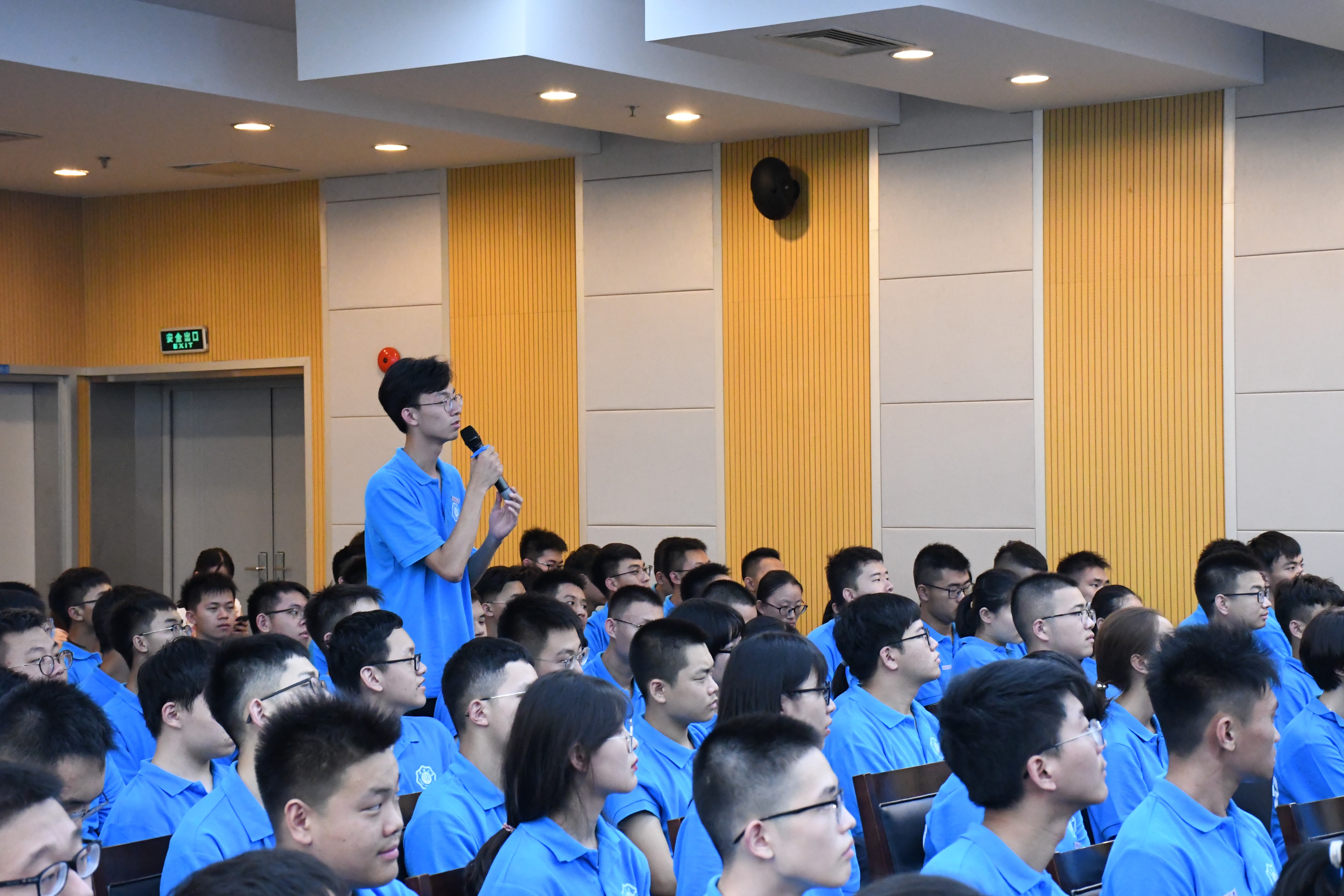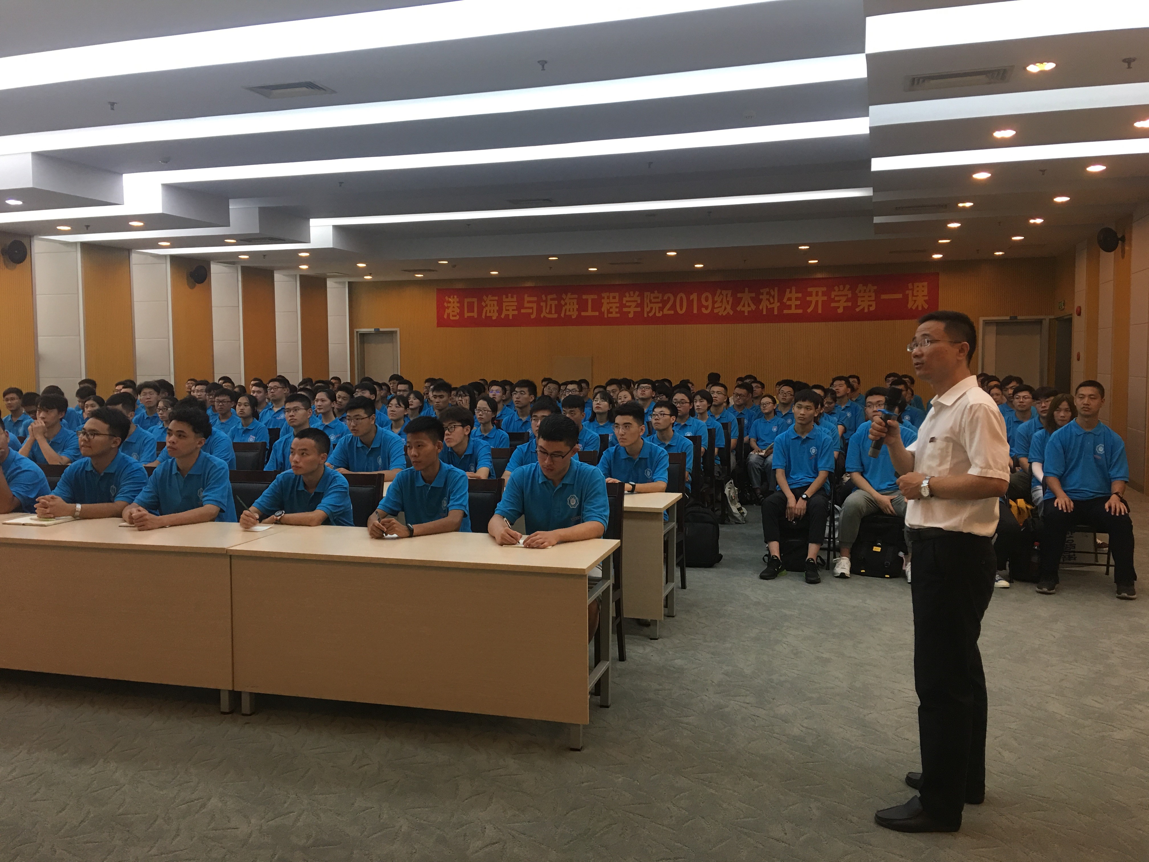 典礼结束后,龚政院长以“港航海资,携手前行”为主题给2019级本科新生讲授开学第一课。他以“河海”、“水利”、“港航”、“海资”四个关键词为引言,从发展历程、发展现状和卓越贡献三方面简略介绍了草莓视频 ,从发展历程、师资队伍、学科专业和教学教育四个方面介绍了草莓视频 ,并以港口工程、航道工程和海岸工程三个板块阐述了港口航道与海岸工程和海洋资源开发技术两个专业的精髓所在,同时他用“舟楫之便,向海而兴”八个字强调了两个专业的意义与优势所在。在龚政院长细致的介绍下,新生们初步了解了草莓视频 的发展历史和专业发展趋势,并就军港建设和科研两个方面提出了疑问,龚院长为此一一解答。