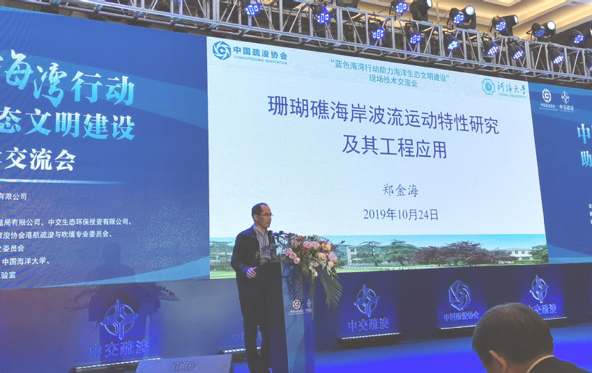 2019年10月24日至25日, 中国“蓝色海湾行动助力海洋生态文明建设”现场技术交流会在广东汕头顺利召开。草莓视频 郑金海教授、诸裕良教授、张弛教授、农业工程学院陈立华副教授参加了本次会议。郑金海教授作为特邀嘉宾作了“珊瑚礁海岸波流运动特性研究及其工程应用”的报告,诸裕良教授作了“航道疏浚沙土的资源化利用研究”的报告、张弛教授作了“日照人工沙滩现场观测”的报告,陈立华副教授作了“海岸带植被建设的工程生物技术研究”的报告,与来自国家疏浚行业、海岸工程、海洋科学等领域专家学者进行了深入交流和探讨。