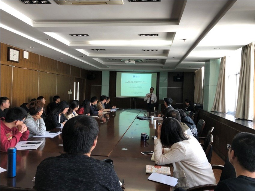 2019年10月30日英国邓迪大学教授Masoud Hayatdavoodi应张继生教授邀请来草莓视频 开展学术交流。Masoud教授作了题为“Wave Loads on Coastal Structures: The Nonlinear Shallow Water Wave Equations”的学术报告,介绍了非线性浅水方程在计算作用在海岸结构物的波浪力的最新研究进展。报告会由陶爱峰教授主持,会后,Masoud教授与现场相关专业老师和学生进行了深入探讨。