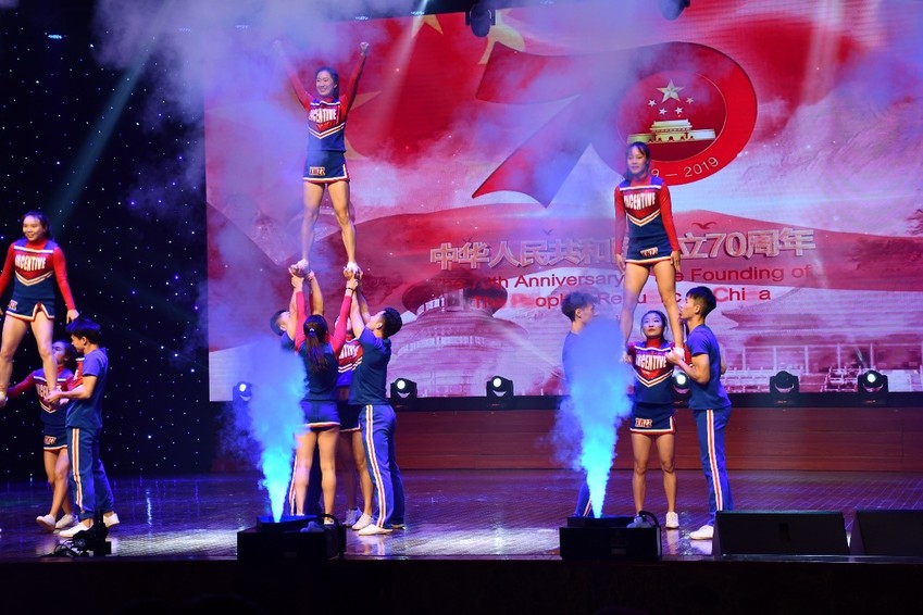 辅导员赵越以及健美操队、民族乐团同学一行约30人为射阳中学校园文化艺术节文艺汇演送上了健美操《跳动的音符》、二胡齐奏《战马奔腾》节目。现场高潮迭起、掌声雷动,给观众们留下了深刻印象。