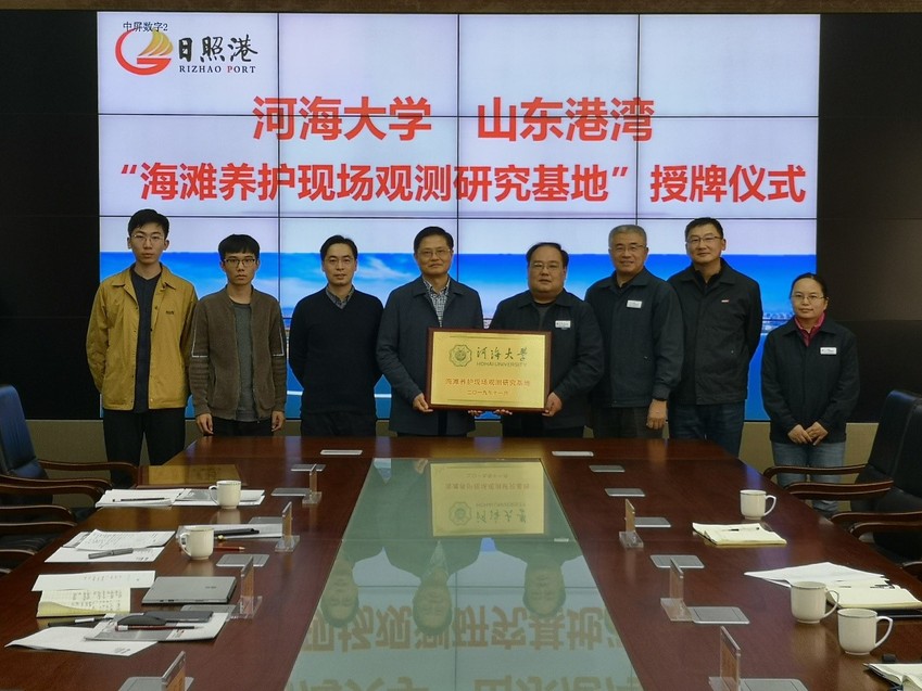 2019年11月13日,草莓视频 诸裕良副院长、张弛教授等一行4人前往山东省日照市与山东港湾建设集团有限公司为草莓视频 海滩养护现场观测研究基地与草莓视频 大学生实习实践就业基地举行授牌仪式。出席本次仪式的还有山东港湾建设集团有限公司总工程师刘安、工程技术室主任来永刚、日照港退岸还海项目负责人庄磊、工程设计咨询公司副经理张贵改。