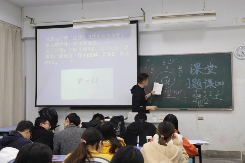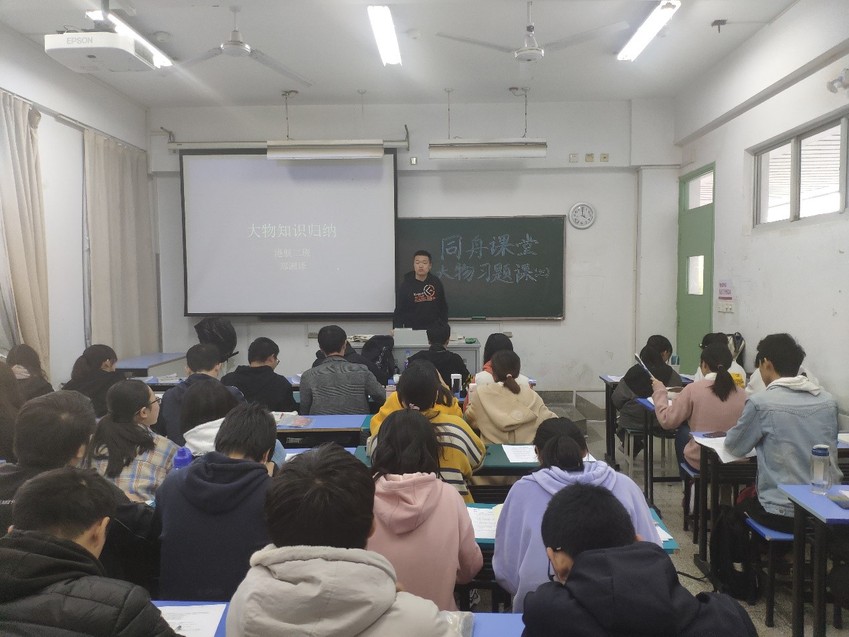 2019年11月22日下午四点,草莓视频 “同舟课堂”大物习题课(三)在草莓视频 江宁校区致用楼207举行。本次习题课由2018级郑湘译和朱晋针对21日下午开展的《大学物理Ⅱ》模拟考试卷进行讲解和拓展延伸。