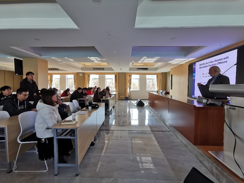 本次学术交流吸引了学院许多老师和研究生参加。Carlos教授先后介绍了葡萄牙里斯本大学概况、海洋技术和工程中心主要研究方向以及团队进展,并针对波浪模拟及验证、智能船舶操纵控制、海洋发电装置水动力、浮式/水下油气开采规划等重要课题作了详细报告。参会教师、同学们与Carlos教授围绕海洋气候变化与波浪变化、风机运行环境的可靠性影响、可再生海洋能装置系泊系统等关键问题展开了热烈讨论。