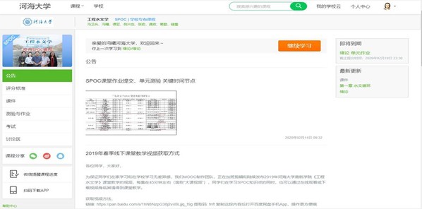 图1河海云SPOC学校专有课程《工程水文学》教学界面