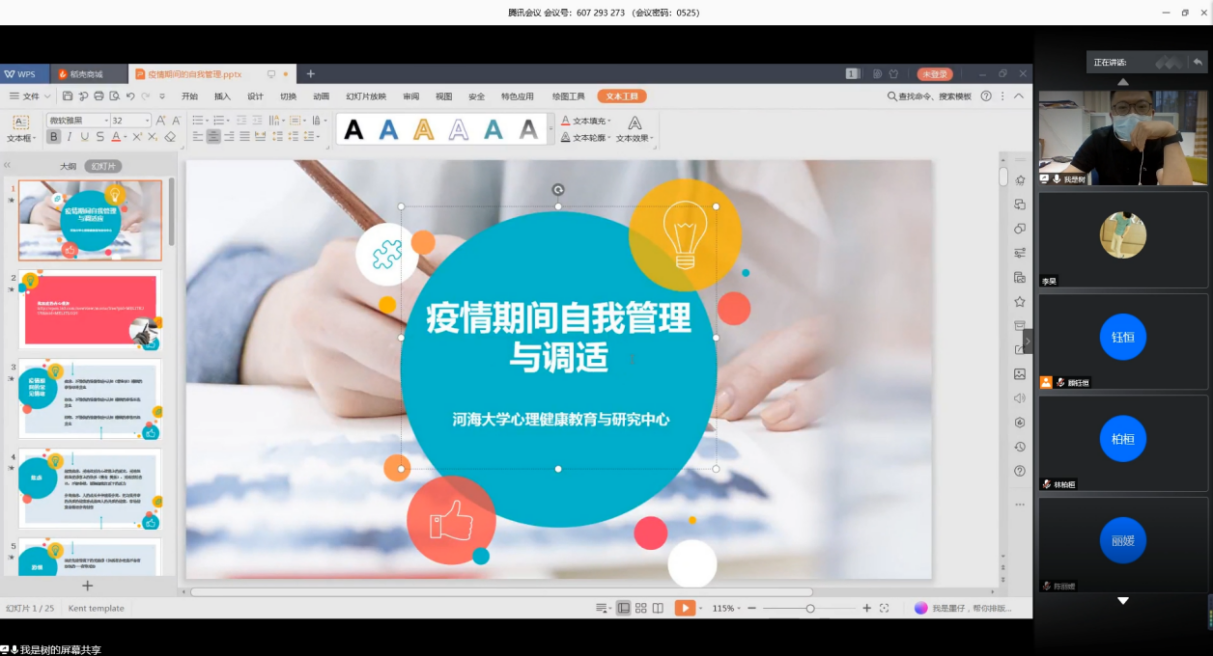 邀请了校心理健康中心赵东伟老师为全体学生做了“疫情期间自我管理与调适”心理讲座。