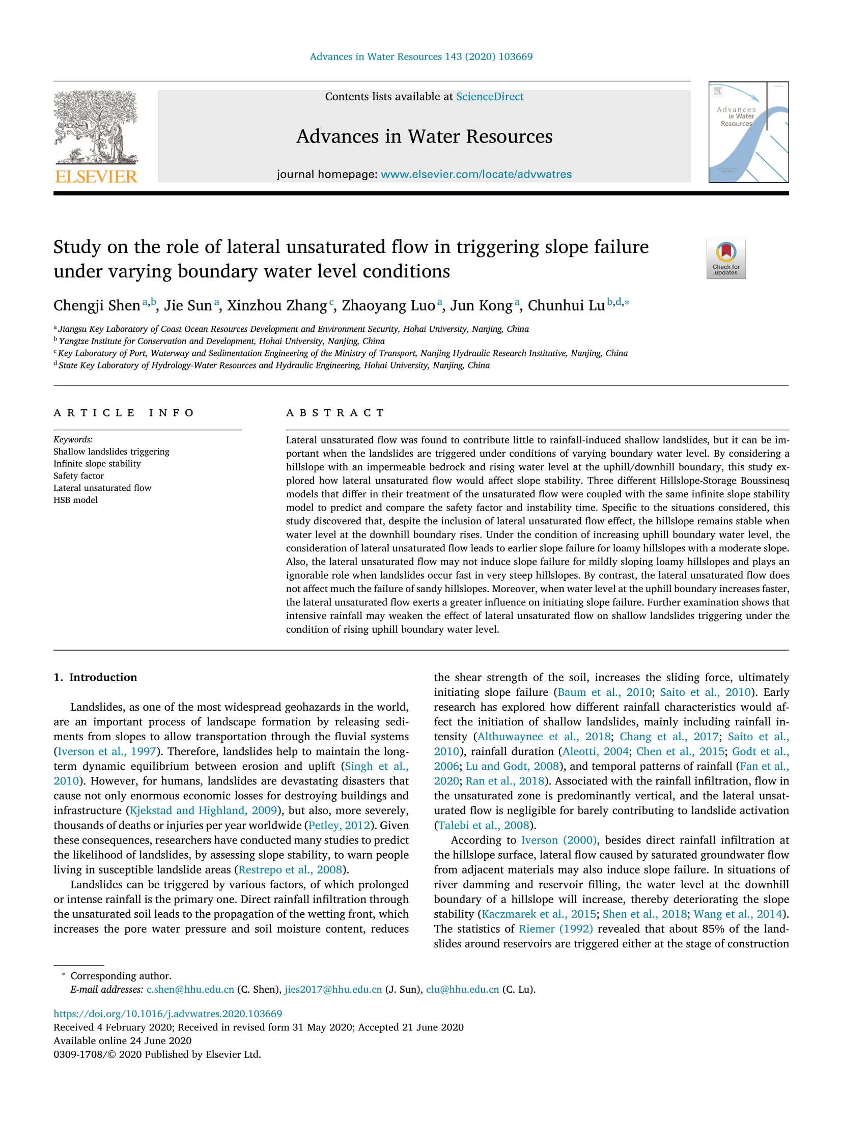 近日,草莓视频 海防所教师沈城吉博士、孔俊教授等在国际权威期刊《Advances in Water Resources》上发表了题为“Study on the role of lateral unsaturated flow in triggering slope failure under varying boundary water level conditions”的学术论文。