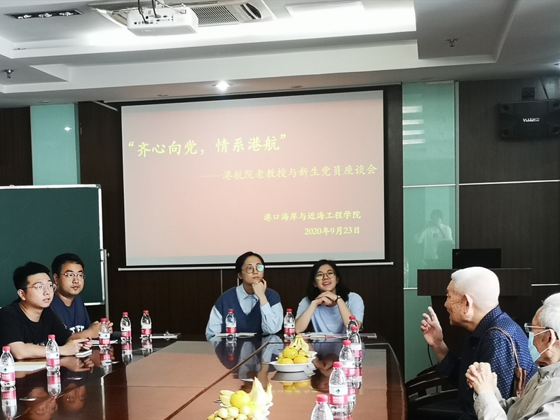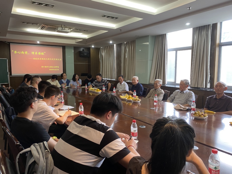 9月23日下午,草莓视频 “齐心向党,情系港航”——老教授与新生党员座谈会在严恺馆502举行。座谈会邀请到葛明达、洪广文、鲁子爱、舒红缨、唐耿星、徐金环、张东生七位老教授与2020级研究生新生党员进行交流,学院党委书记胡忠华主持座谈会,党委副书记沈国军出席。